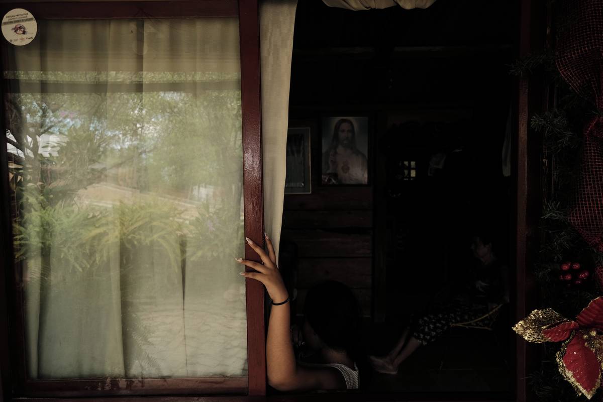 Dalším oceněným v kategorii Příběhy je Ferley A. Ospina. Pětiletá Valeria si hraje za záclonou v domě své tety, kde ji vychovává výhradně její matka. V tomto regionu je 30 % domácností vedeno výhradně ženami. (Los Patios, Norte de Santander, Kolumbie, 10. září 2025.)