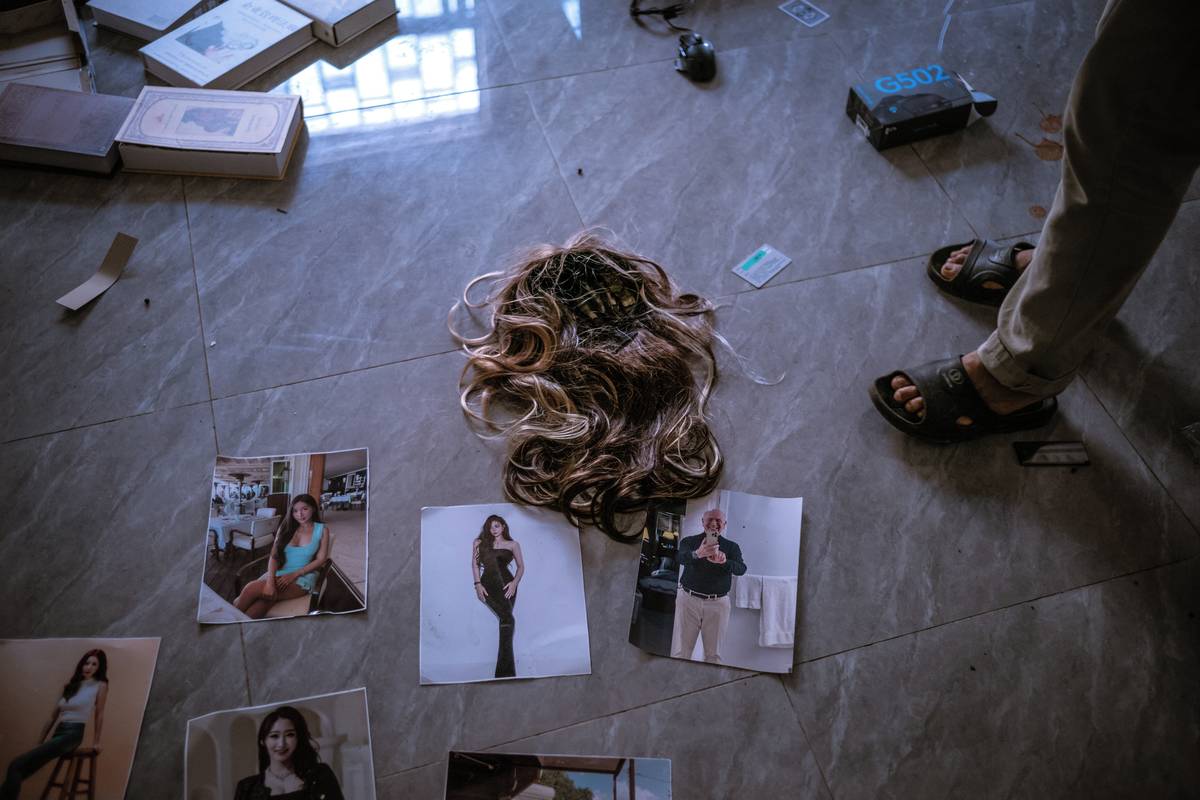 S eskalací občanské války v zemi se pohraniční oblasti staly centry lukrativního průmyslu internetových podvodů. (Fotografie a rekvizity používané k vytváření falešných online identit a navazování vztahů s oběťmi. 5. prosince 2025.)