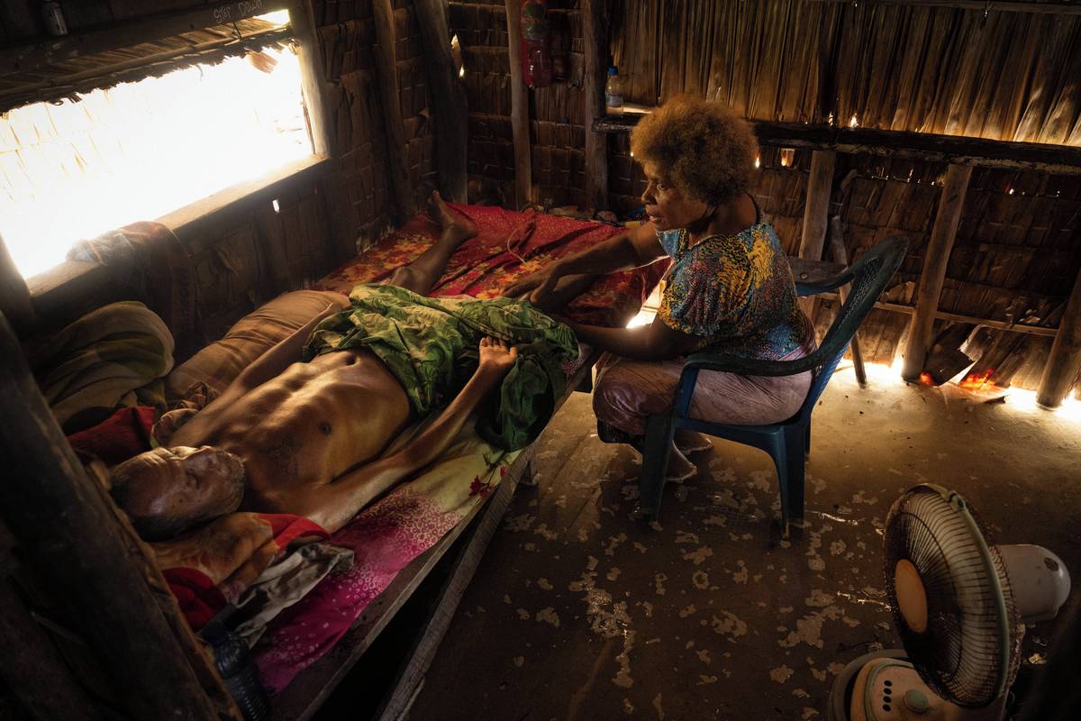 Dnes, kdy stoupající hladina moře vytlačuje komunitu a ohrožuje její budoucnost, představuje pěstování mořských řas ekonomickou alternativu k sezonnímu lovu. (Eddie Sua je již dva roky upoután na lůžko v chatrči, kterou při přílivu zaplavuje voda. Upozorňuje, že bez potravy a příjmů z prodeje delfíních zubů by komunita hladověla. Vesnice Fanalei, ostrov Fanalei, 16. února 2025.)