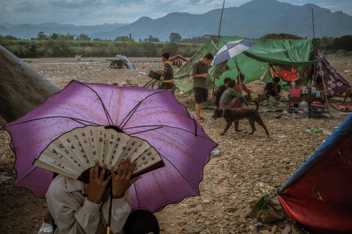 Statisíce lidí z celého světa byly přivezeny do jihovýchodní Asie a nuceny k práci pro tyto nelegální podniky. Když povstalecké síly vyhnaly s juntou spojené milice, které park střežily, v zemi uvízly tisíce pracovníků z 30 zemí. (Pracovníci v provizorním úkrytu poblíž řeky Moei. Mnohým z nich šéfové podvodného centra zabavili doklady, proto nemohli překročit hranici do Thajska. 5. prosince 2025.)