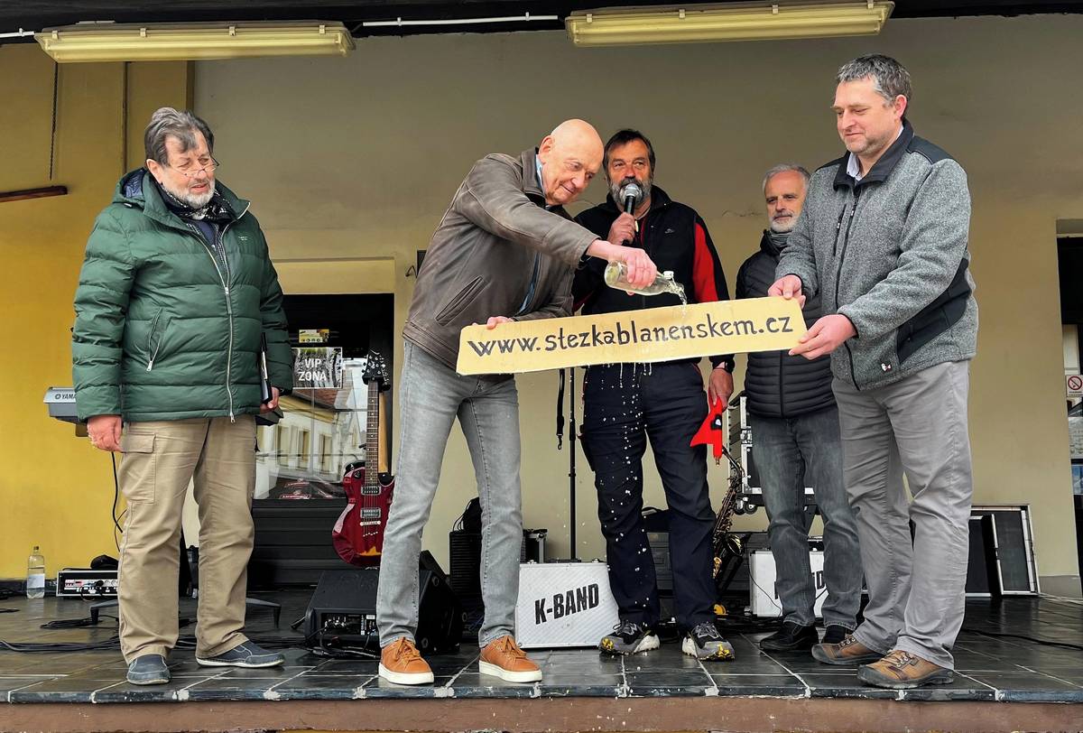 Sobotní slavnostní křest Stezky Blanenskem. Vodou z řeky Svitavy ji křtí starosta Blanska Jiří Crha.