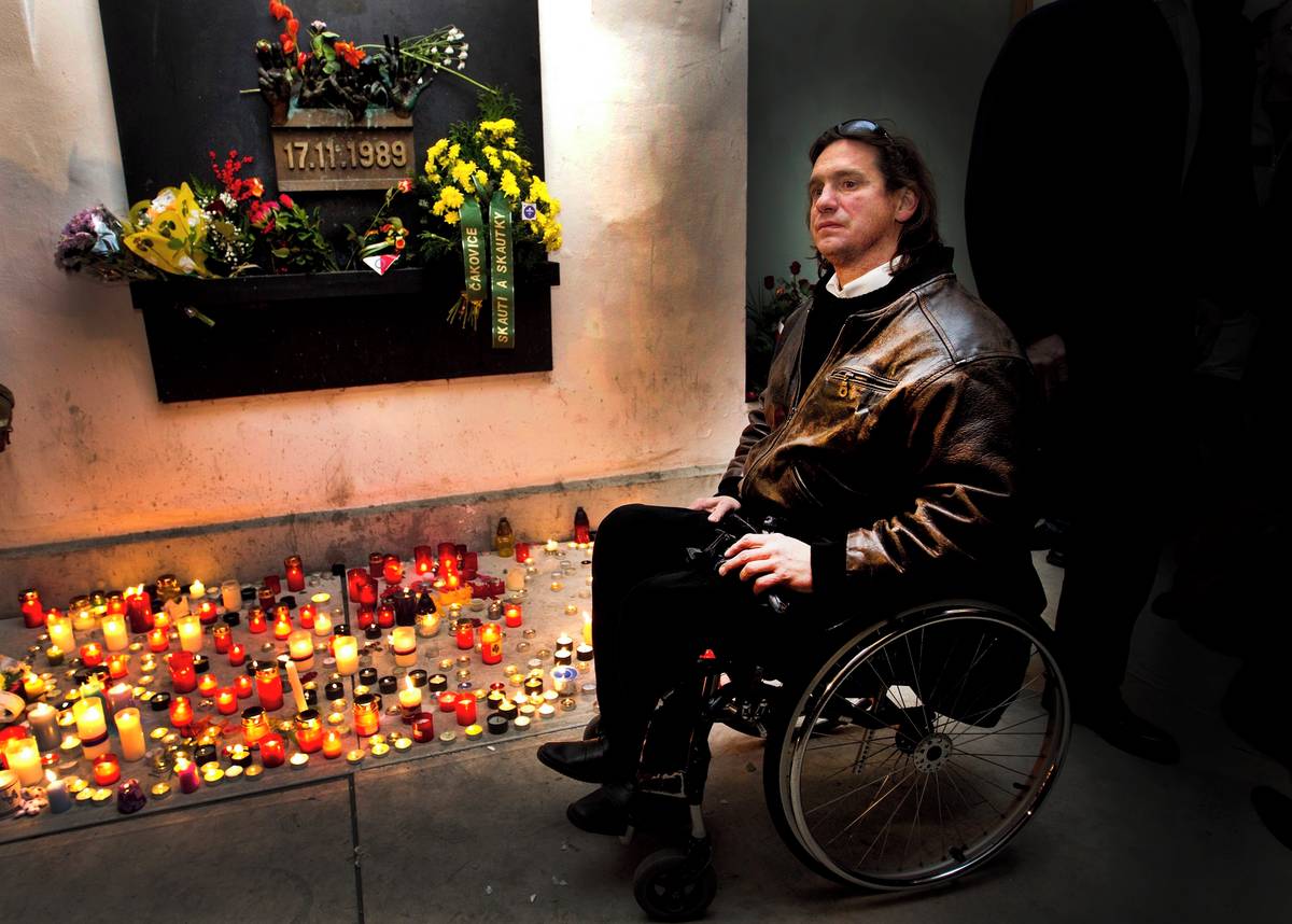 Na poslední fotografii je Jan Potměšil u památníku událostem na Národní třídě z listopadu 1989.