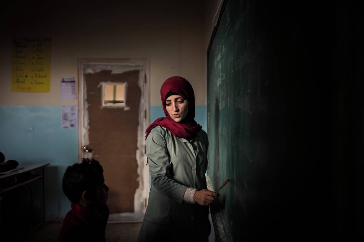 Mladý syrský uprchlík během výuky na předměstí Arsalu. Omezené zdroje, problémy s pobytem a pracovní omezení rodičů brání mnoha dětem uprchlíků v přístupu ke vzdělání. Libanon, 31. října 2017.