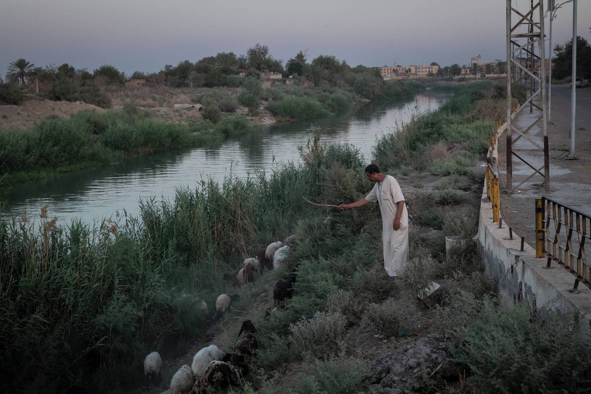 (Pastýř pase stádo ovcí na břehu řeky Eufrat. Řeka odděluje jednotky loajální nové syrské vládě. Dajr az-Zaur, Sýrie, 21. srpna 2025.)