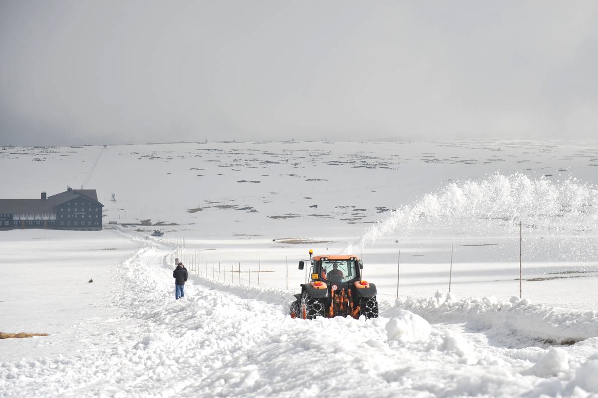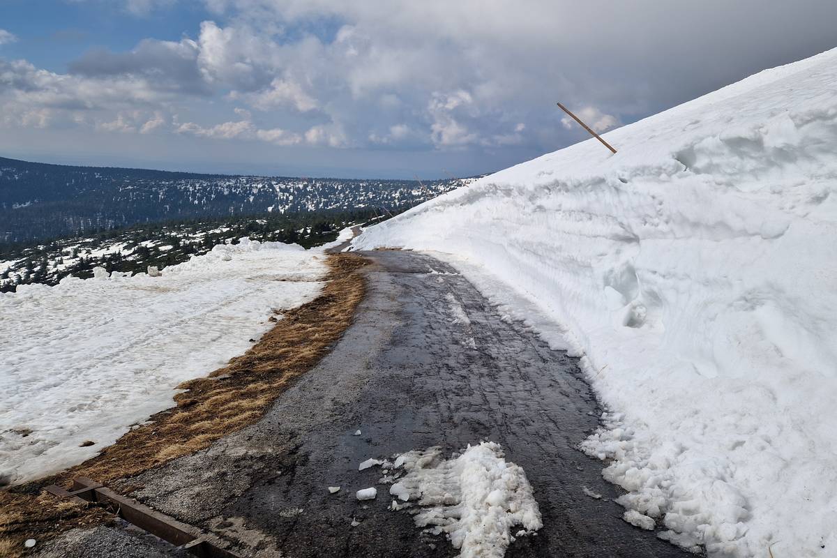 Cesta na Luční boudu se letos frézovala 17. dubna.