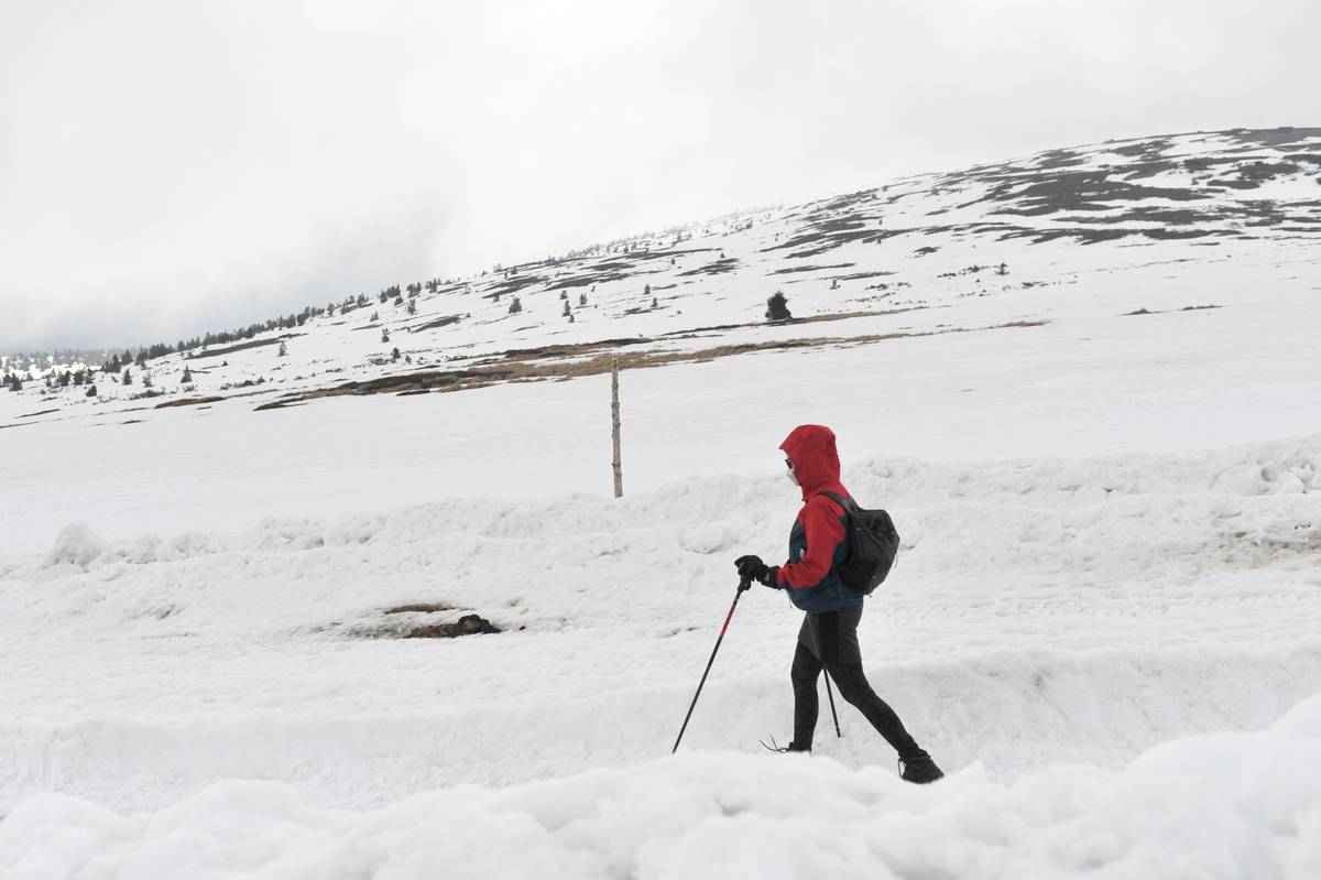 V úseku nad Modrým dolem bývá sněhu nejvíc, letos sotva dva metry.