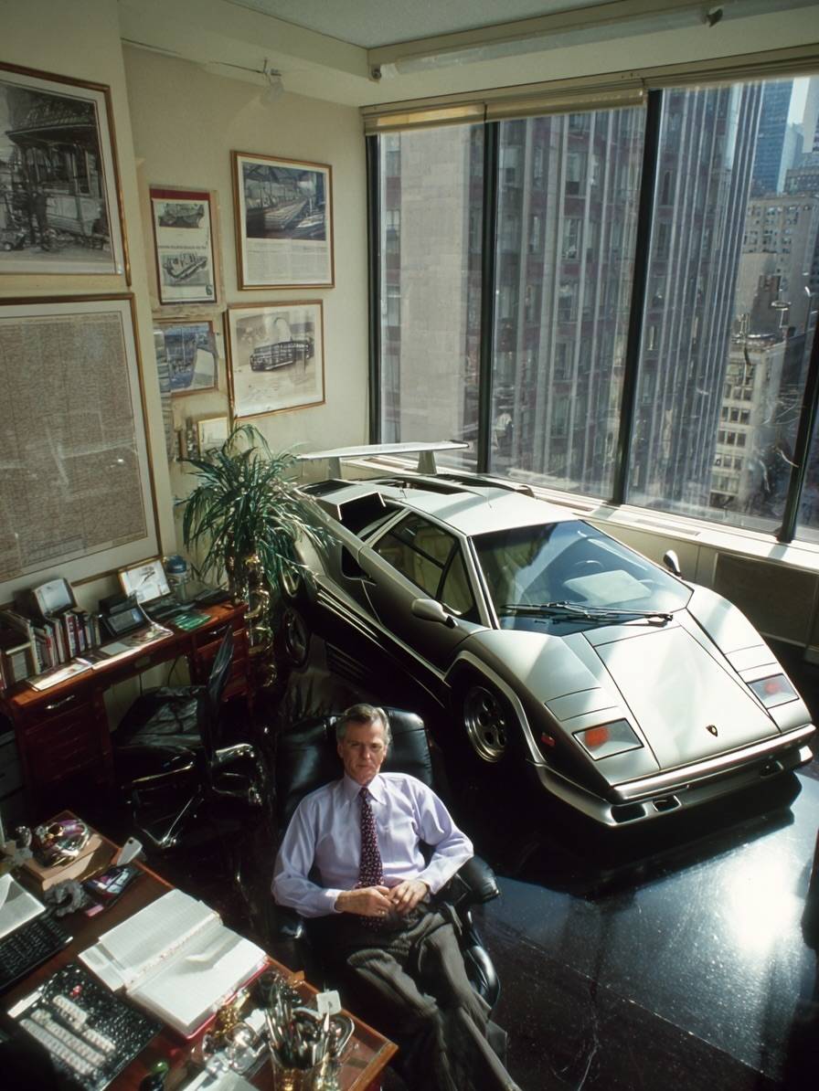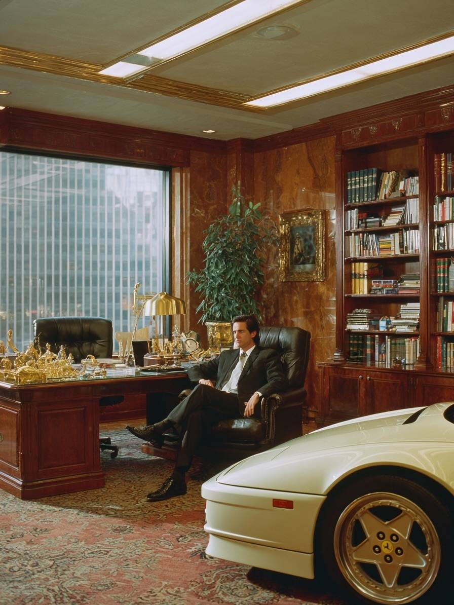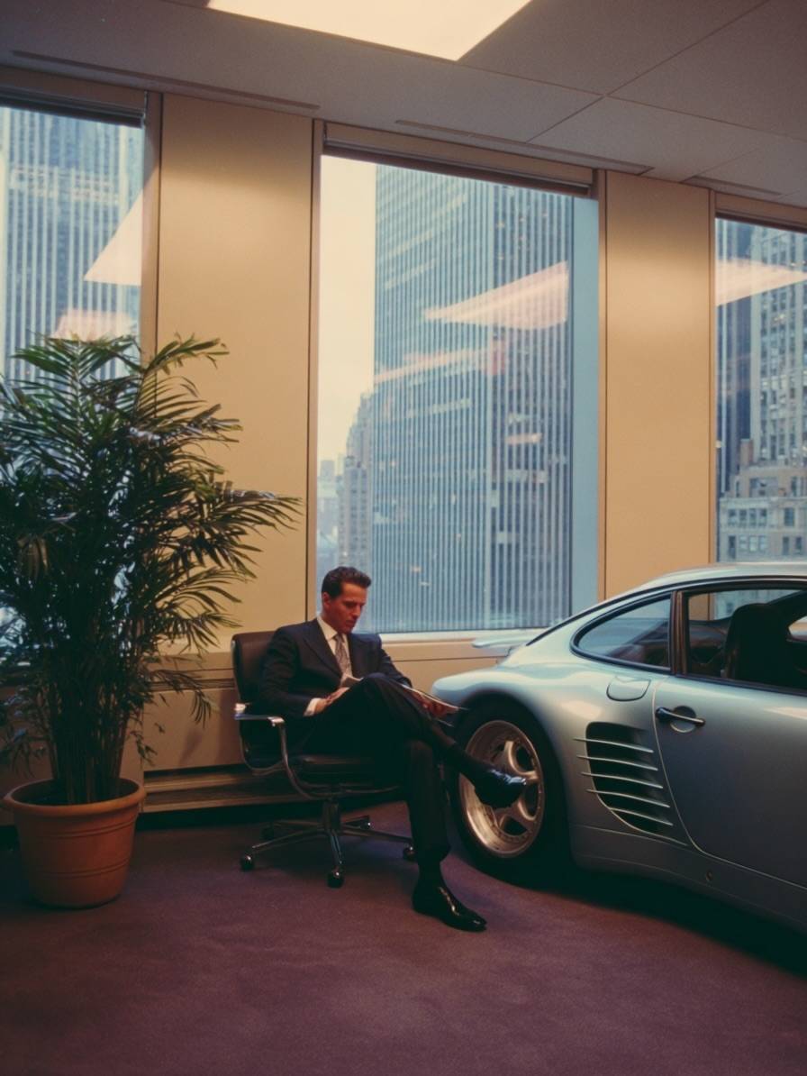 Kontroverzní snímky, které mají zachycovat americké boháče s drahými auty v kancelářích