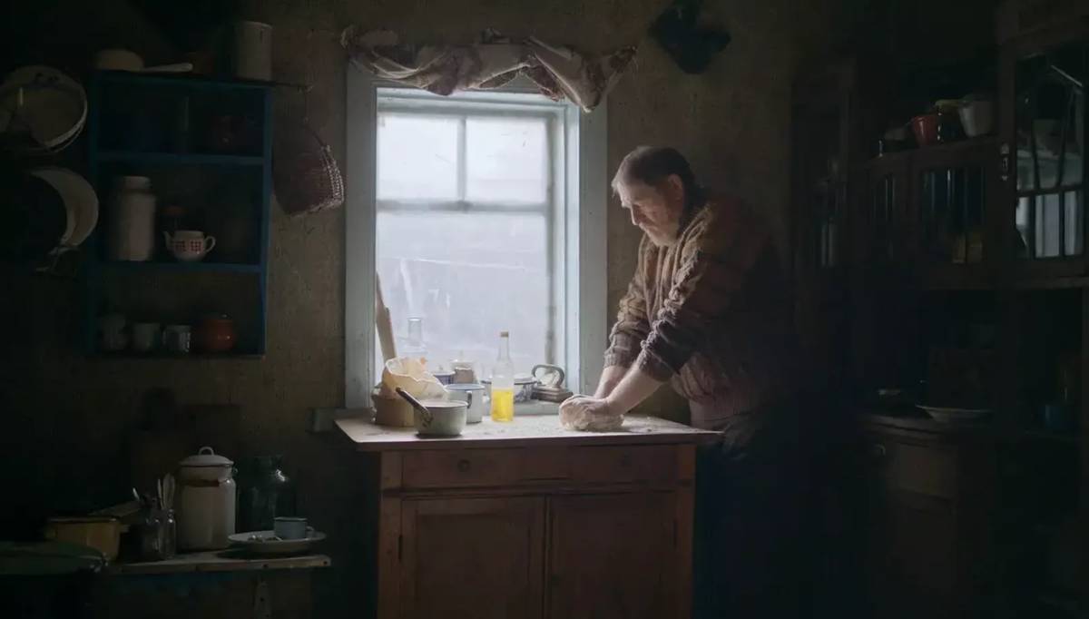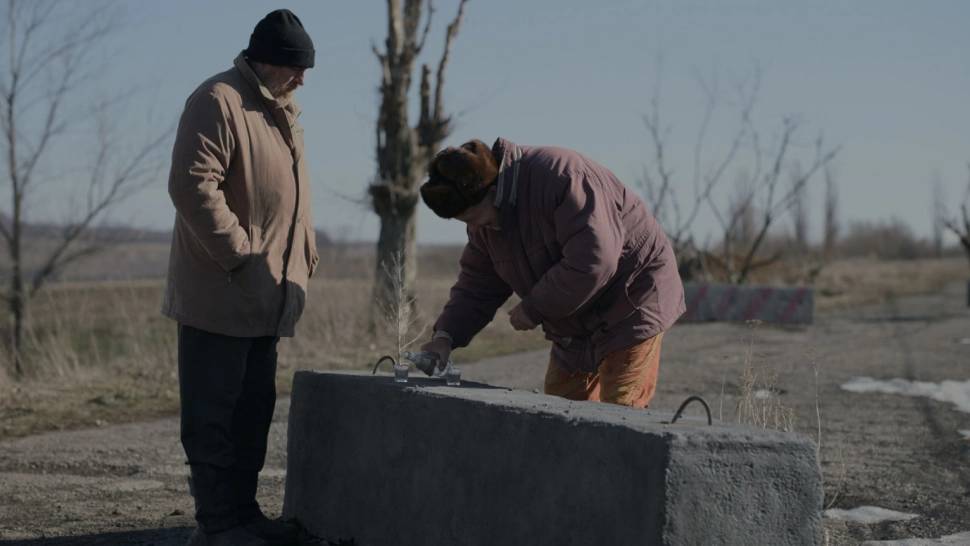 Serhij (Viktor Ždanov) a Paška (Volodymyr Jamnenko) při sousedském popíjení vodky