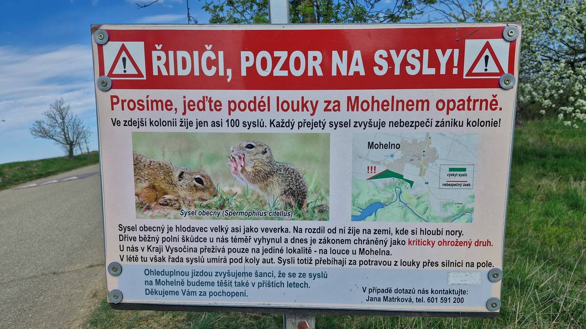 Unikátní dopravní značky u Mohelna na Třebíčsku mají chránit kriticky ohrožené sysly před koly aut a motorek.
