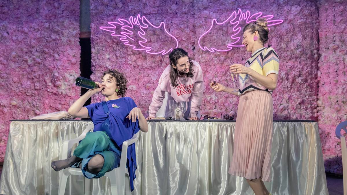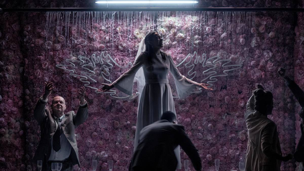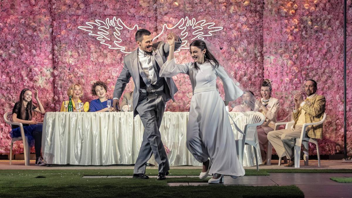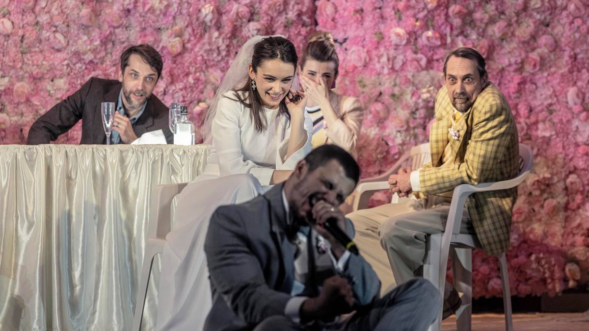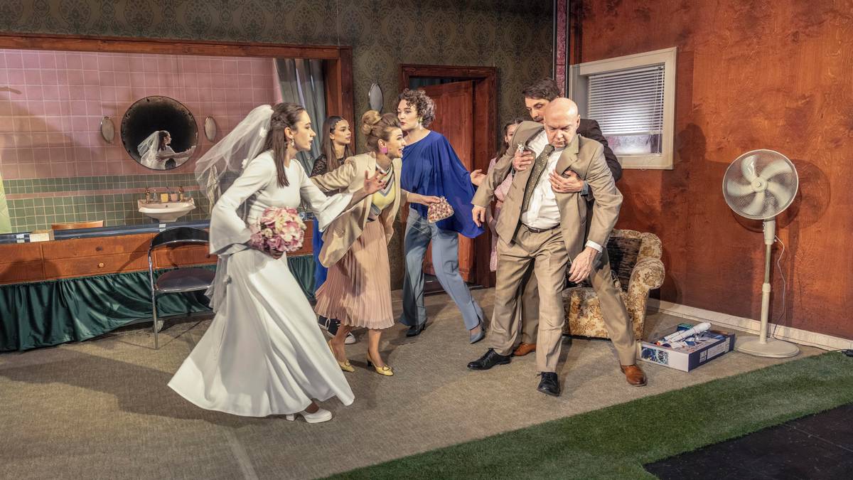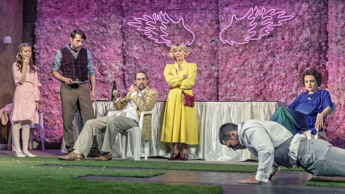 Hádka svatebčanů v v inscenaci Než hvězdy zapadnou v Divadle ABC