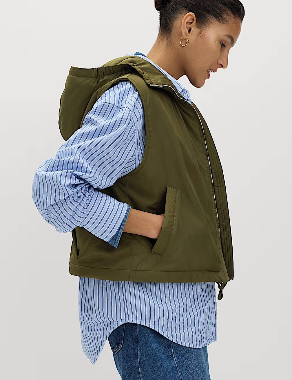 Zkrácená vesta s kapucí, Marks & Spencer, 1299 Kč