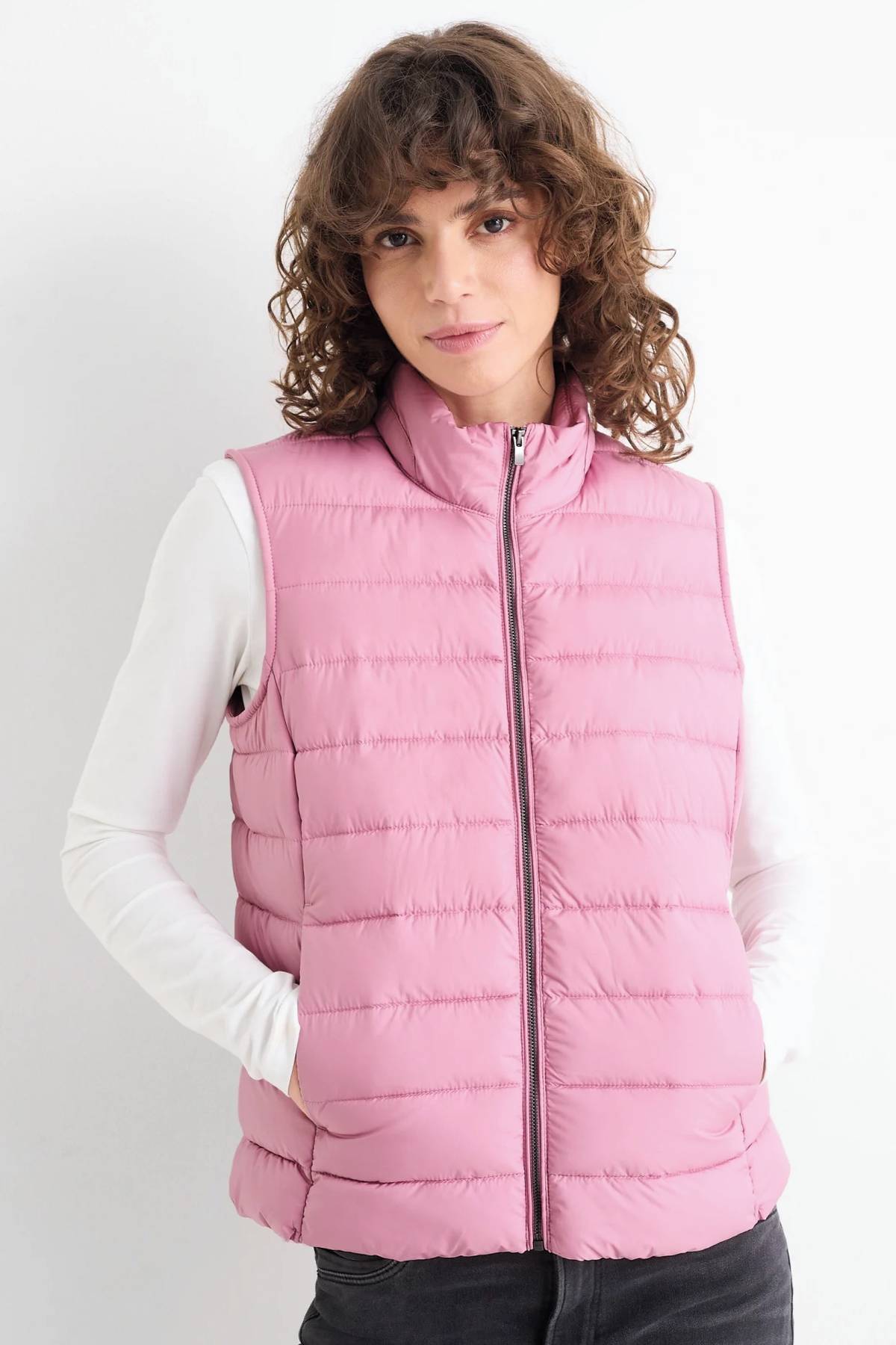 Prošívaná vesta růžová, C&A, 798 Kč