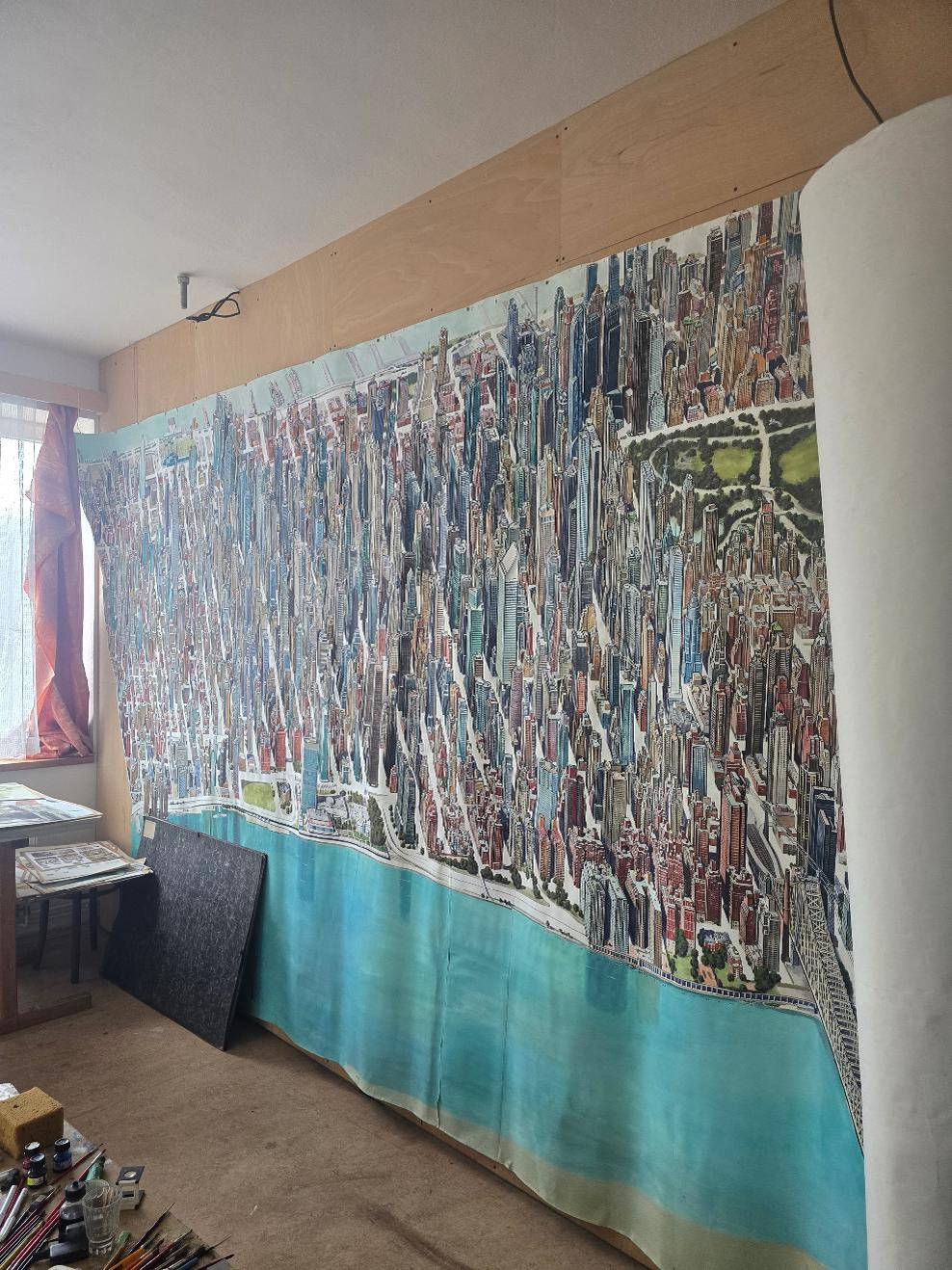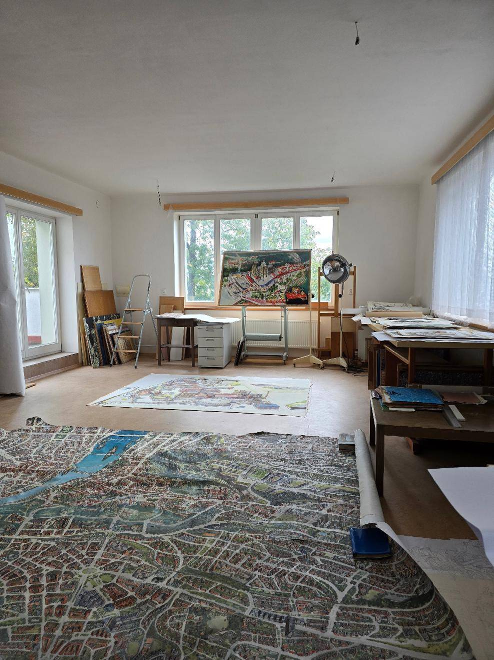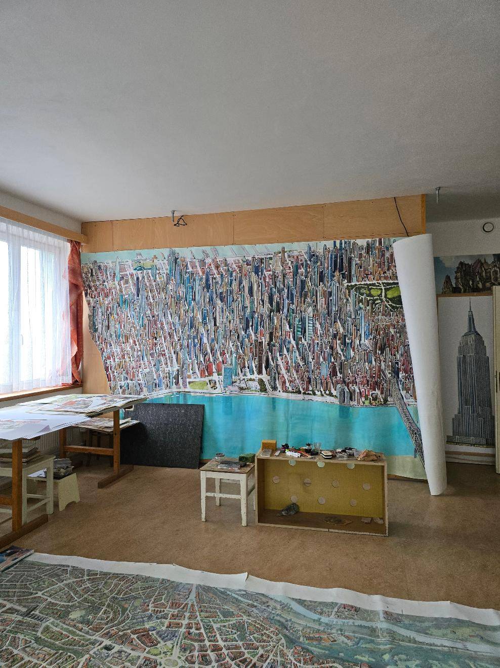 Malovaný mapový podklad má velikost 5×6 metrů.