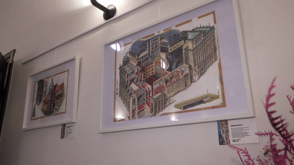 Malíř Tomáš Rygl si prohlíží připravenou výstavu, vernisáže se však osobně neúčastnil.