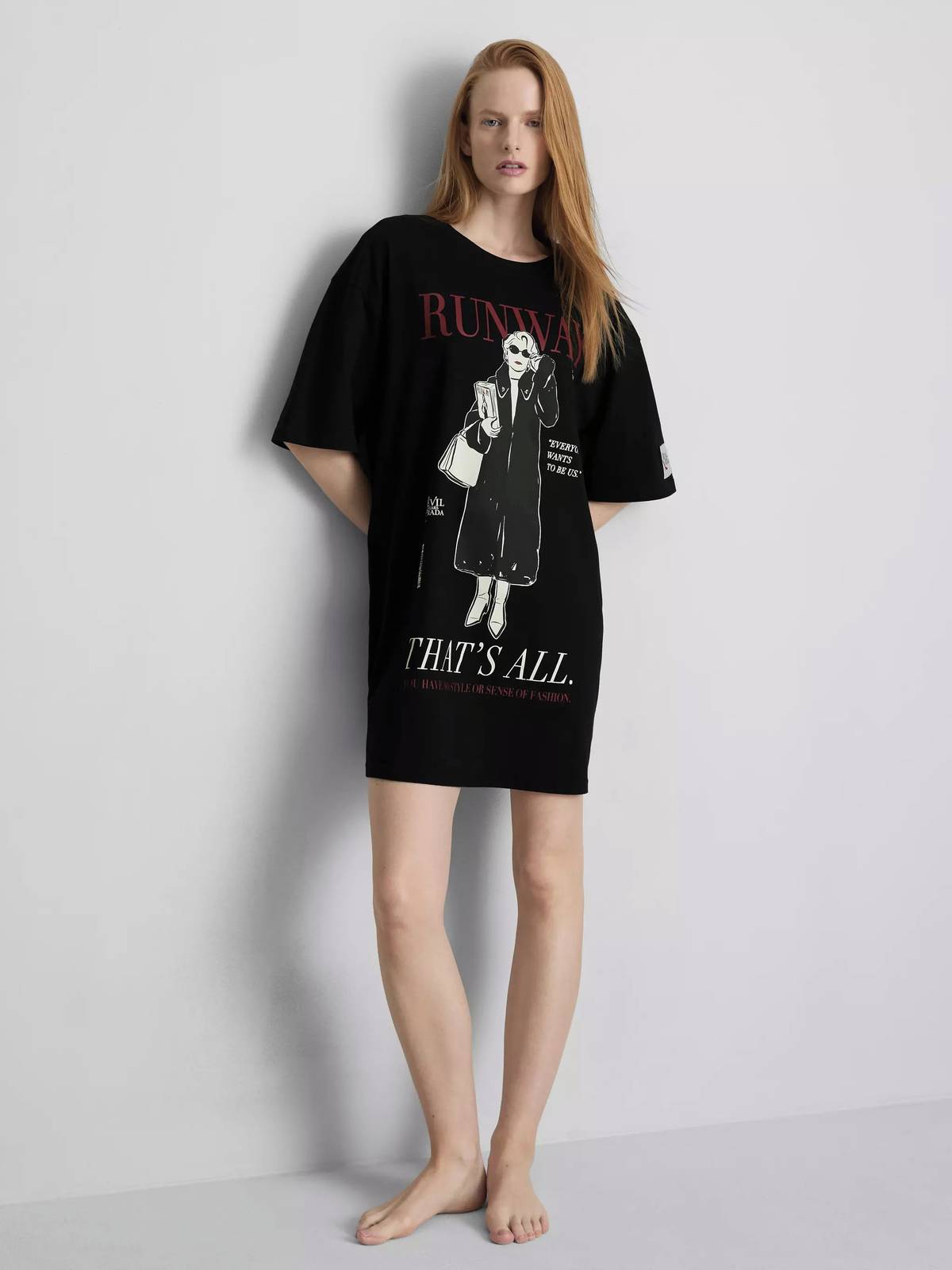 Volná bavlněná noční košile s grafikou Ďábel nosí Pradu, Primark, 365 Kč