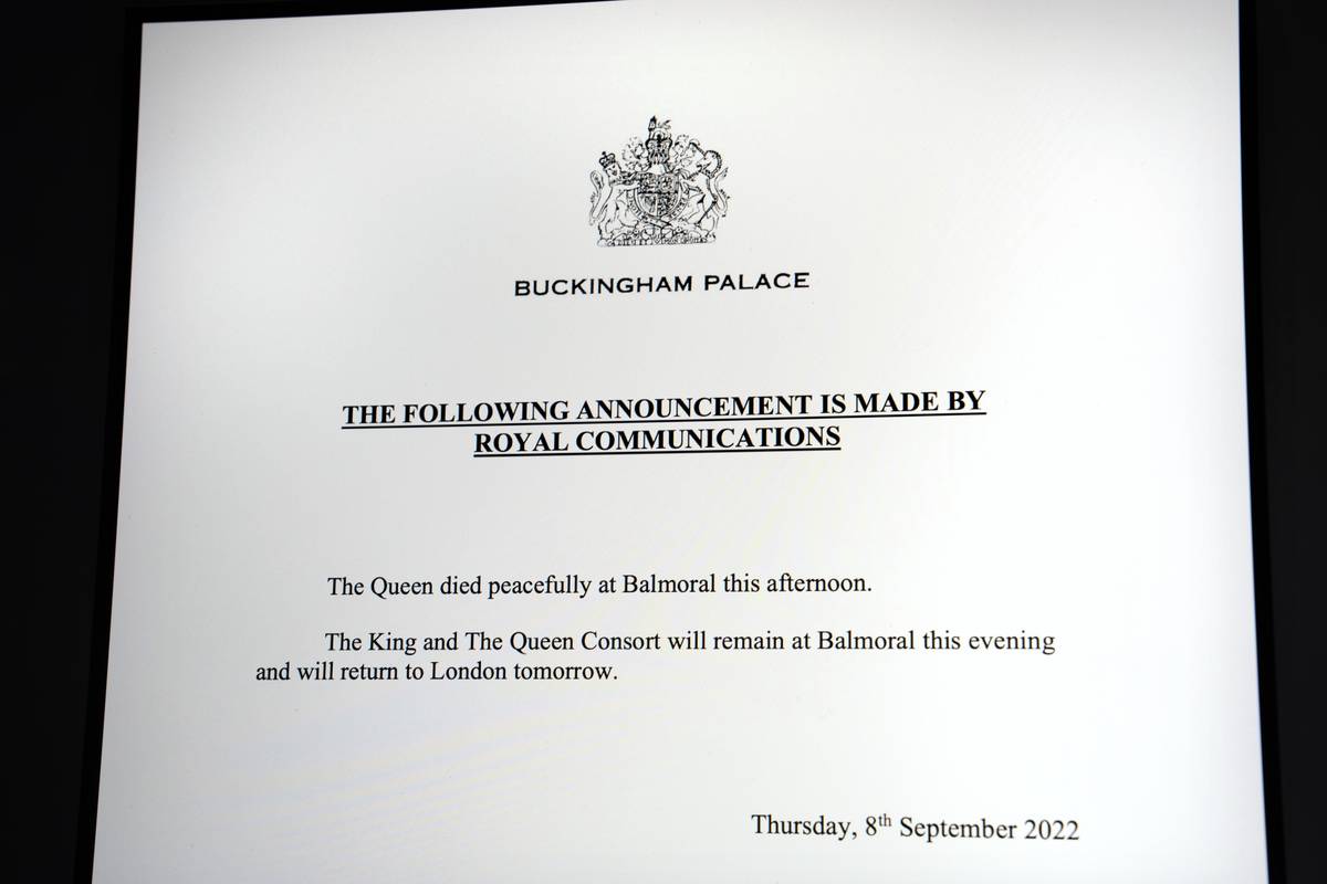 O dva dny později přišlo strohé oficiální oznámení. Královna Alžběta II. zemřela pokojně 8. září 2022 na panství Balmoral ve věku 96 let.