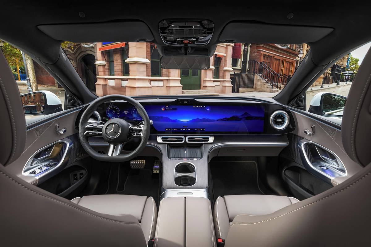 Dominantou kabiny je volitelná palubní deska MBUX Hyperscreen.