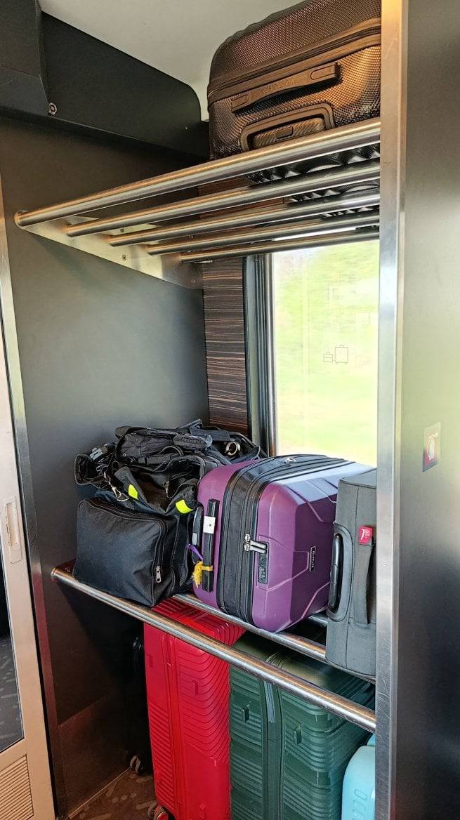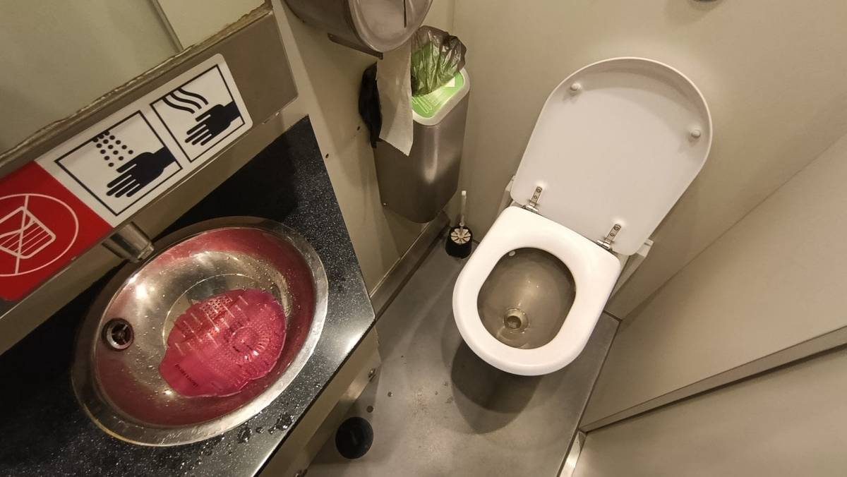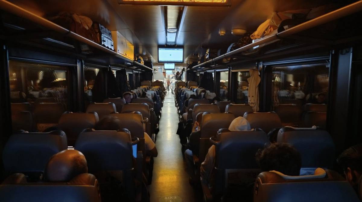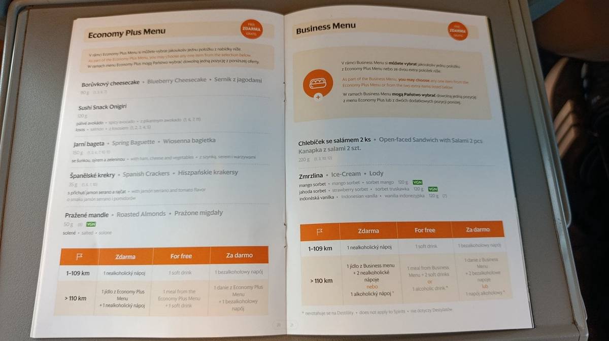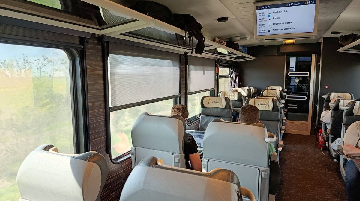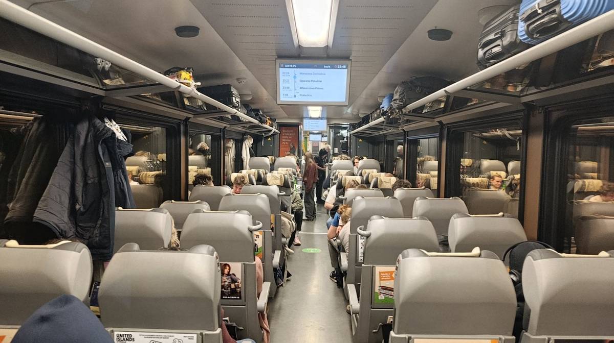 Třída economy za světla (stevardi následně světlo vypnuli krátce po odjezdu z Varšavy)