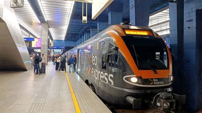 Vlak společnosti Leo Express přijíždí do stanice Olomouc hlavní nádraží