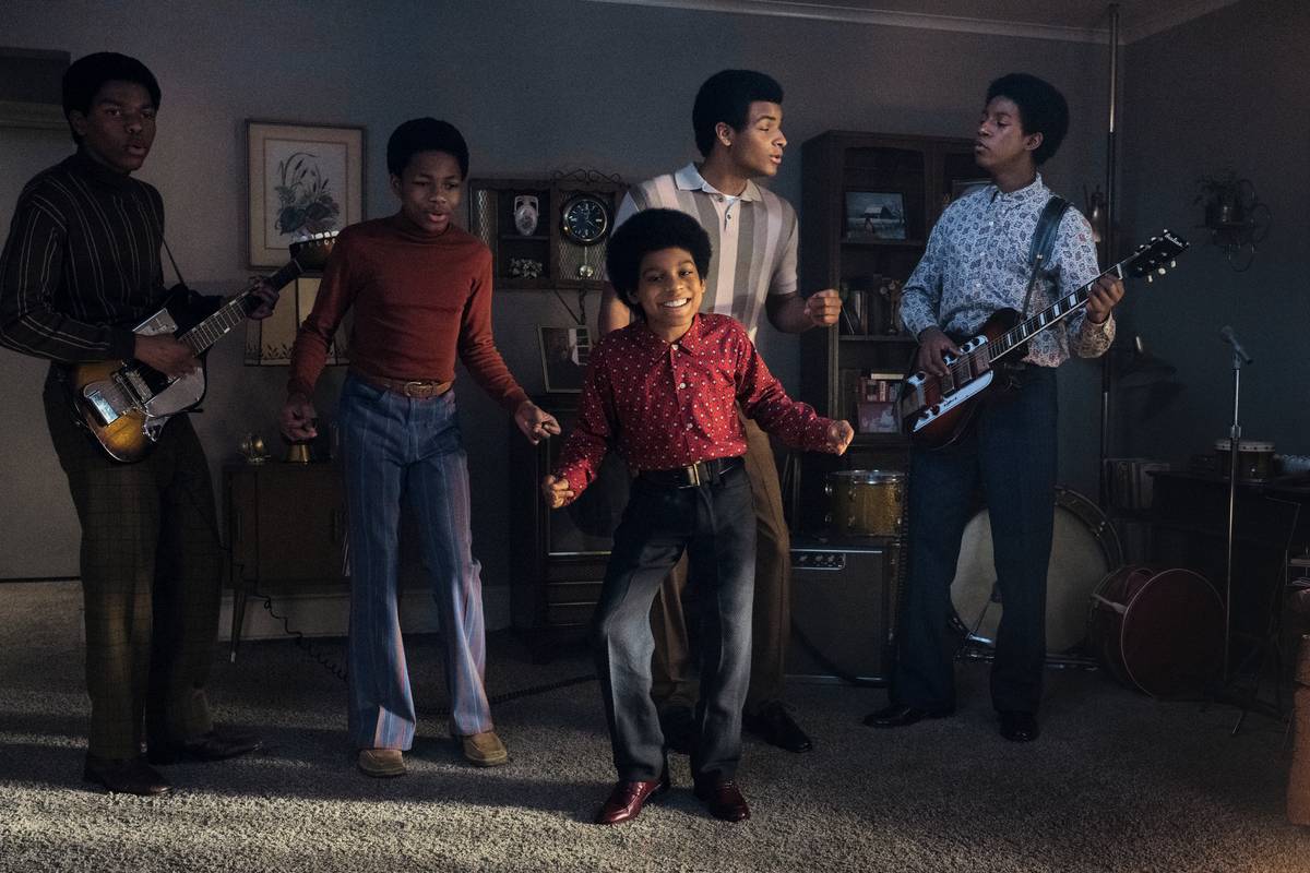 Jackson 5 v mládí. Zleva Judah Edwards, Jaylen Lyndon Hunter, Juliano Valdi v roli malého Michaela Jacksona, Nathaniel Logan McIntyre a Jayden Harville.