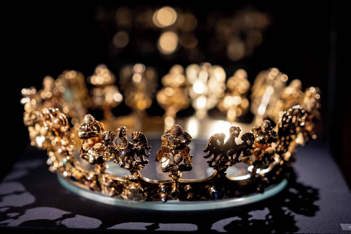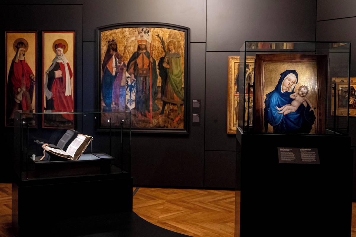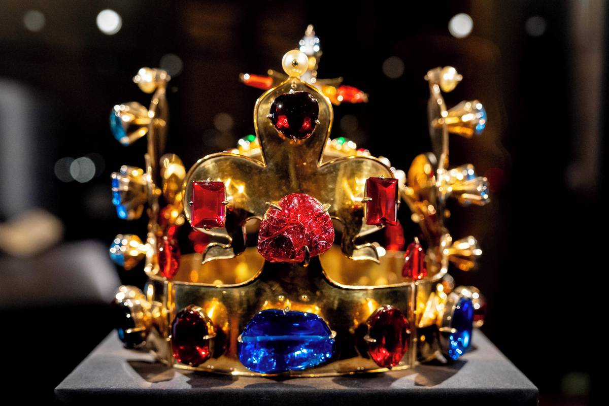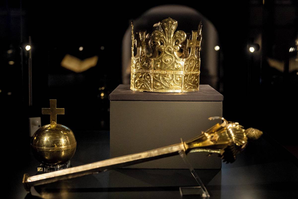 Pohřební klenoty Přemysla II. Otakara, prvního českého panovníka evropského významu. Koruna, žezlo i jablko patří k ozdobám výstavy.