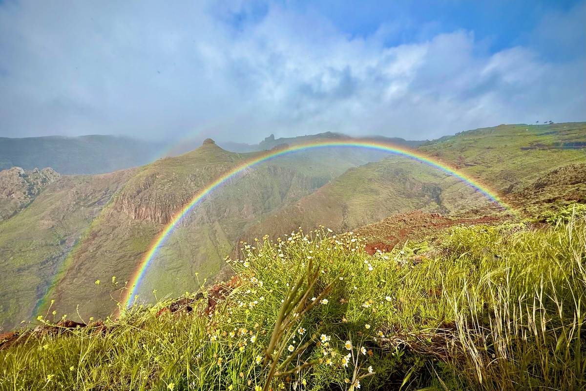 I déšť má své výhody. Vyhlídka El Sombrero s dvojitou duhou.
