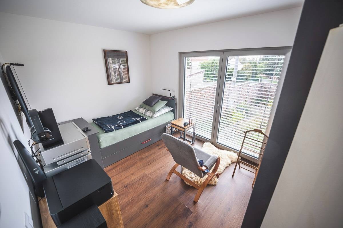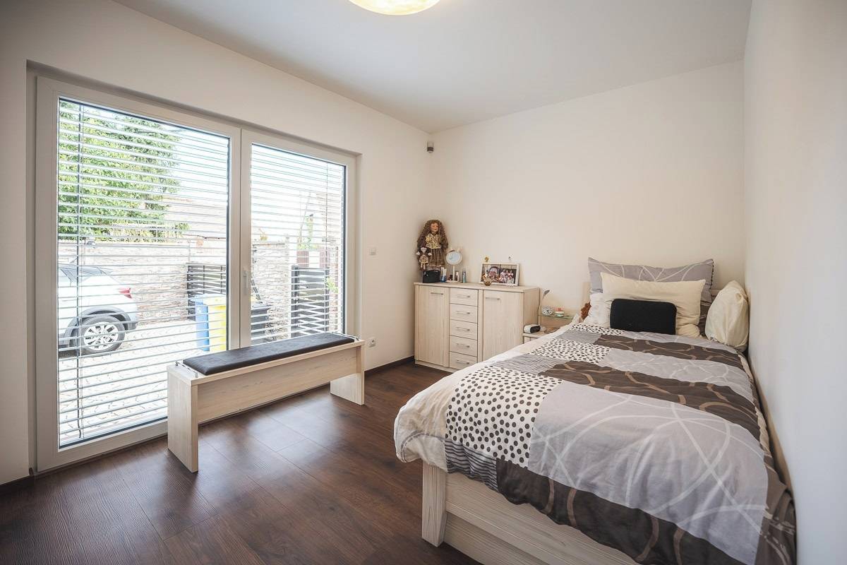 Součástí vejminku je i vlastní ložnice s francouzským oknem směrem do zahrady.