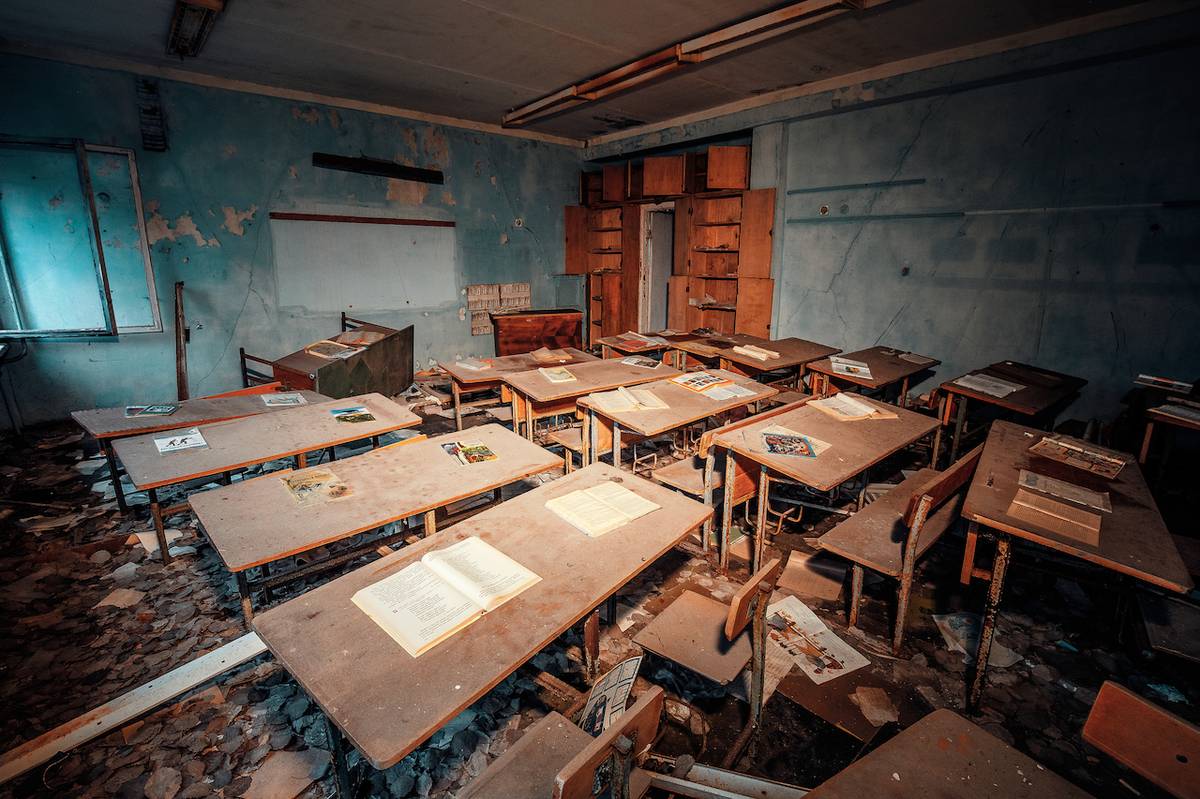 Těžko říci, proč to jsou právě opuštěné školní učebny, mateřské školky nebo dětská oddělení nemocnic, která v opuštěných městech působí nejděsivěji.