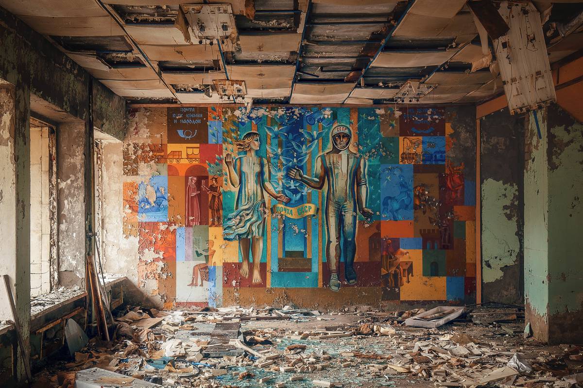 Nástěnná malba v budově bývalé pripjaťské pošty