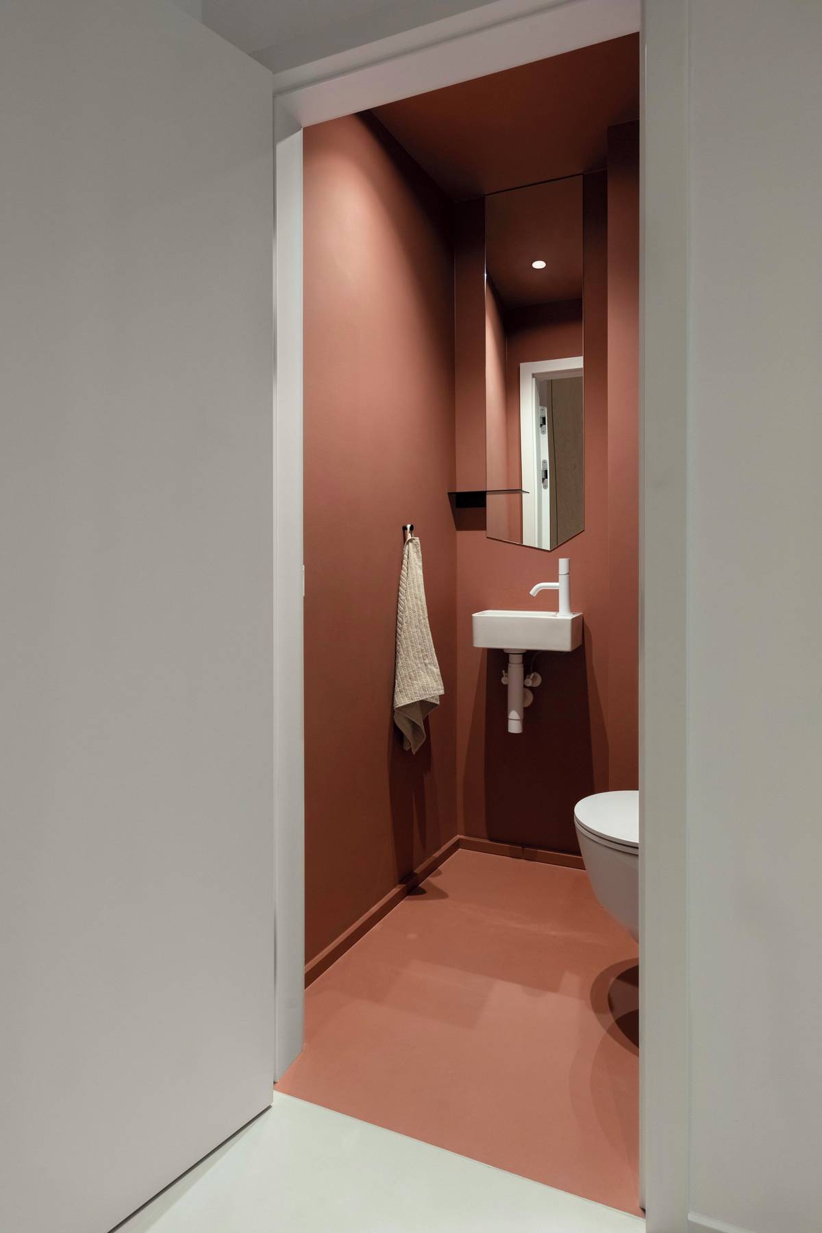Toaleta se odlišuje: je kompletně v cihlovém odstínu.