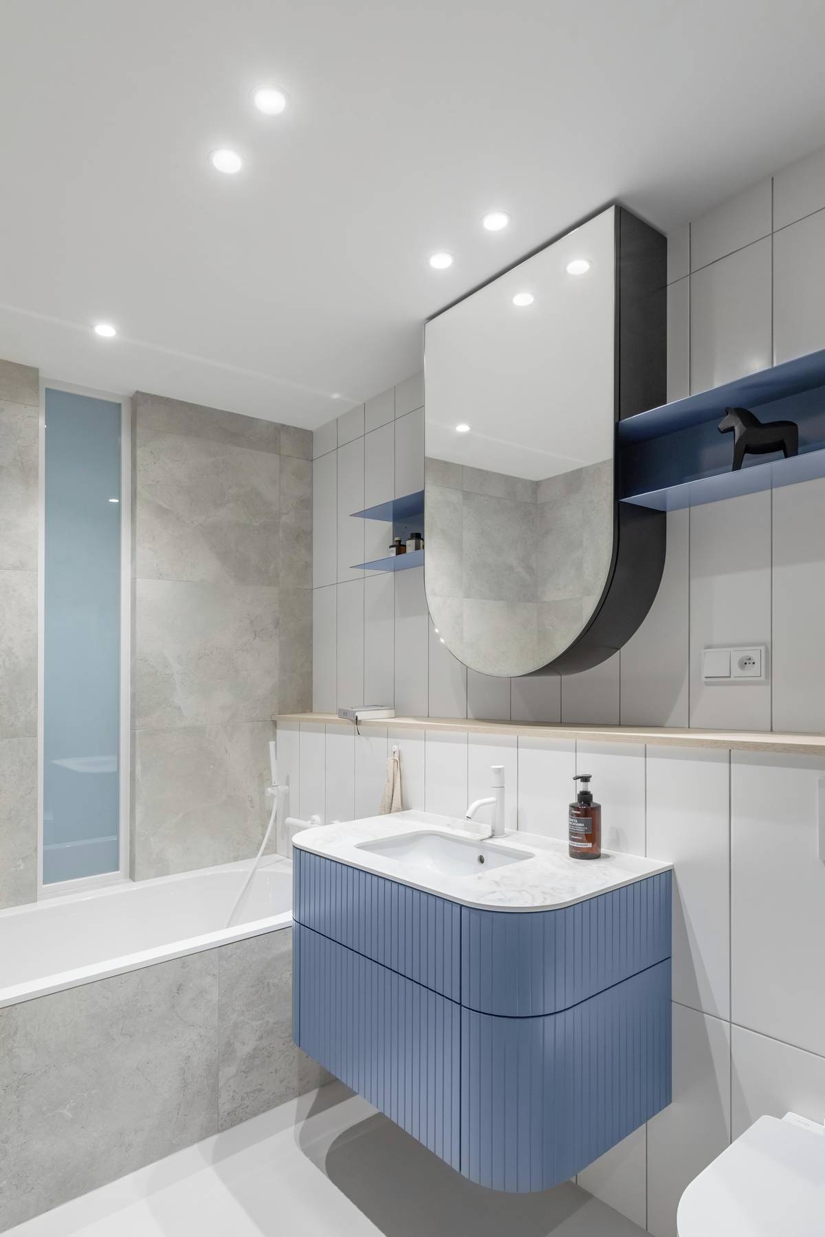 Koupelna je umístěná v centrální části bytu.