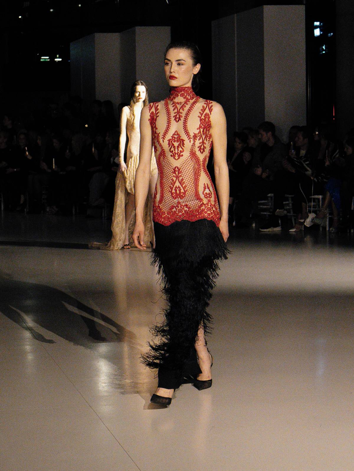 Krajka ve spojení s třásněmi v podání návrháře Tomáše Němce.