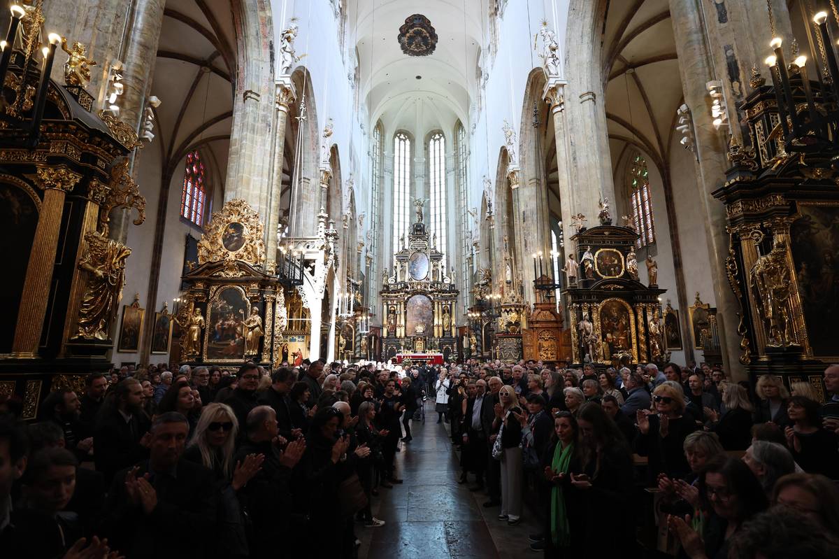 V zaplněném pražském Chrámu Matky Boží před Týnem se rodina a veřejnost toto úterý odpoledne rozloučili s Janem Potměšilem.
