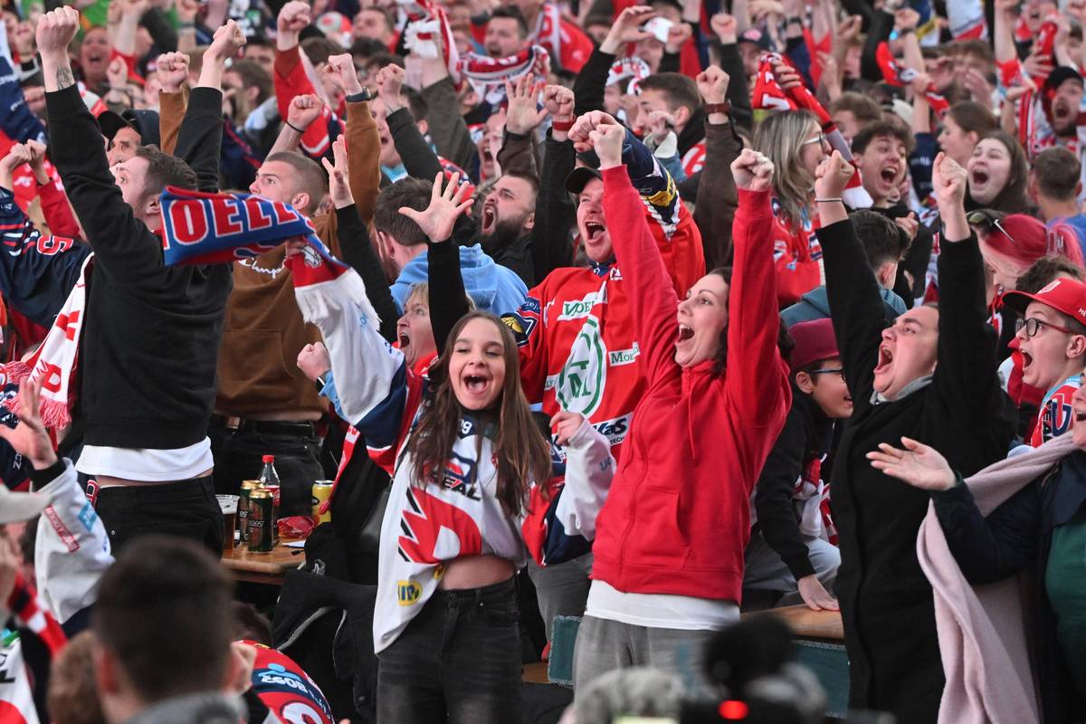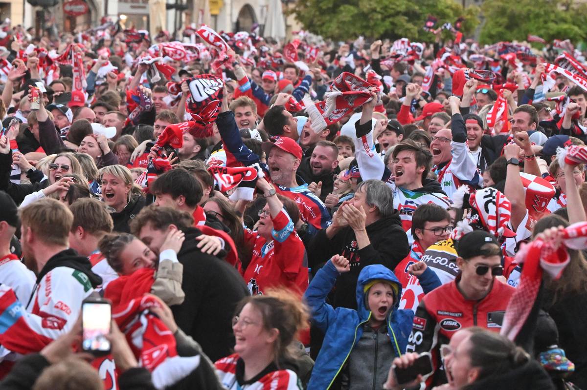 Fanoušci slaví na Pernštýnském náměstí v Pardubicích