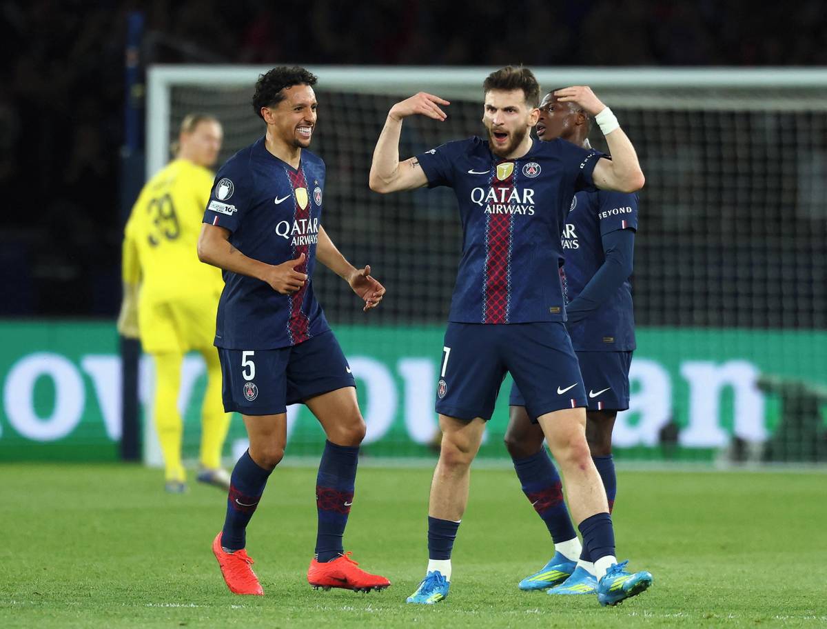 Fotbalista PSG Joao Neves po vedoucím gólu proti Bayernu.