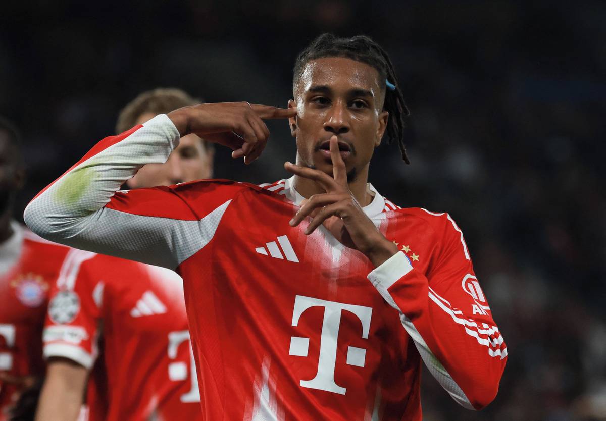 Michael Olise z Bayernu se raduje z vyrovnávací trefy proti PSG.
