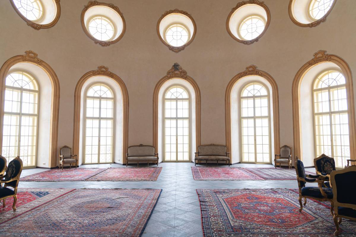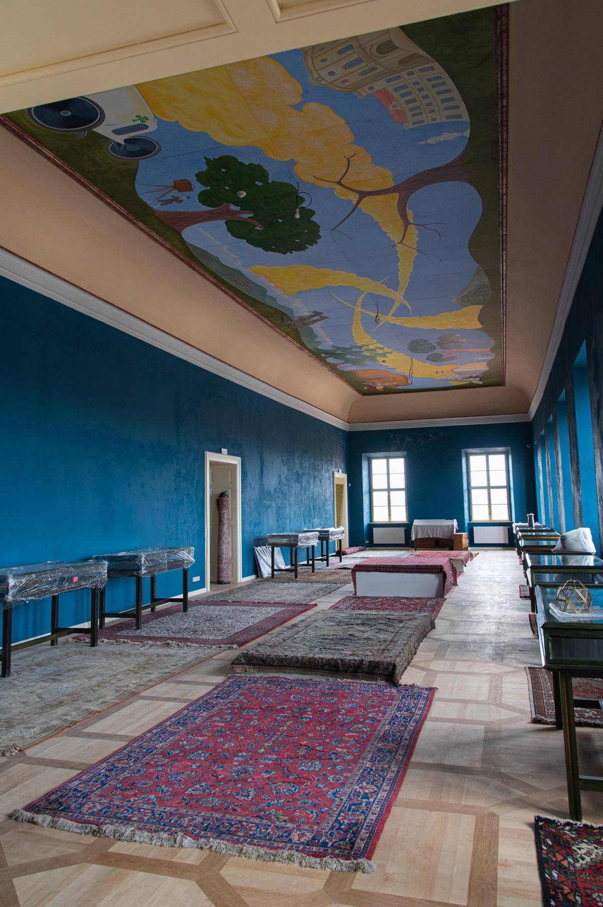 Hodovní místnost s největším stropním dílem v celém objektu. Má přes 100 metrů čtverečních a na výmalbě pracoval český malíř Tomáš Císařovský.