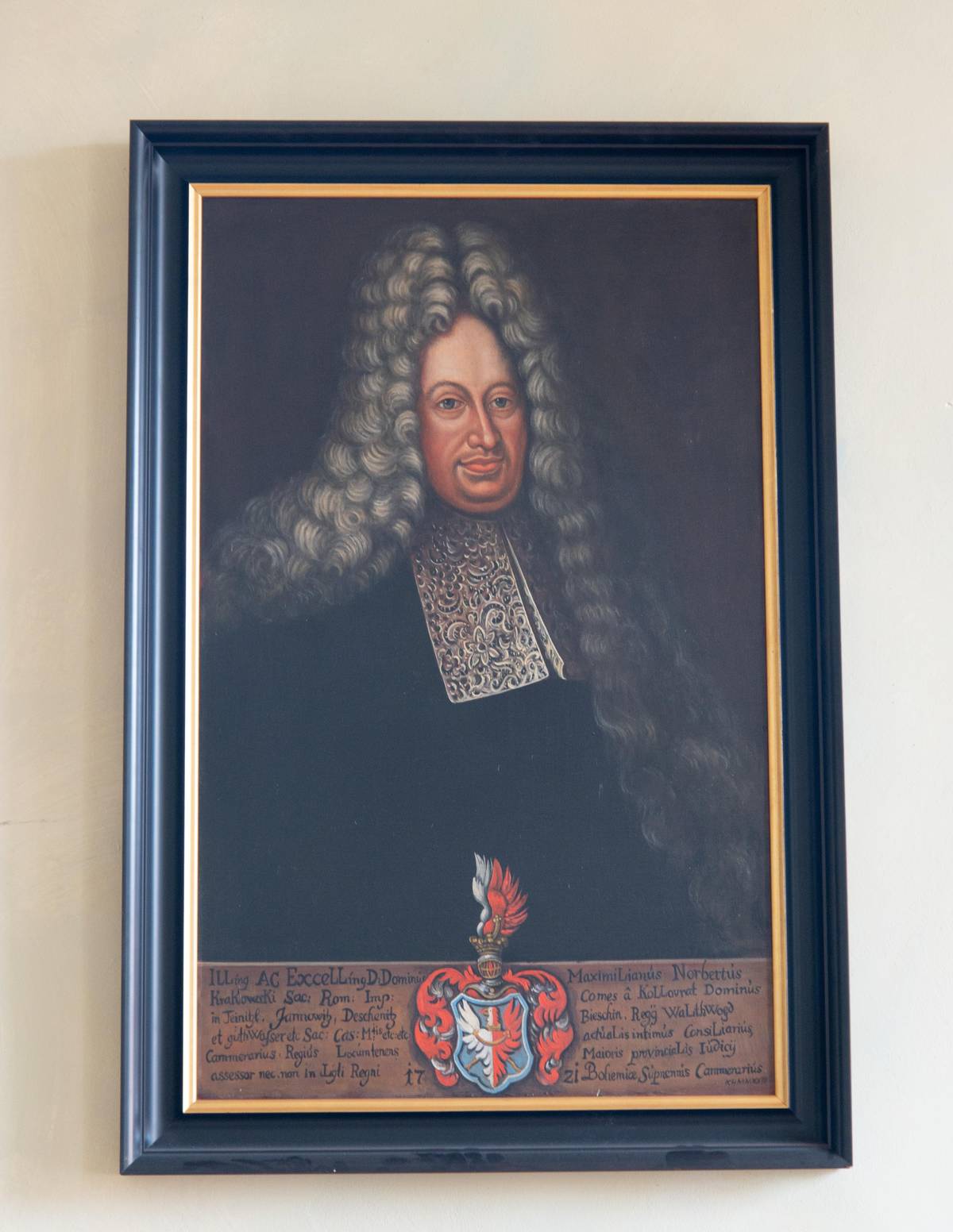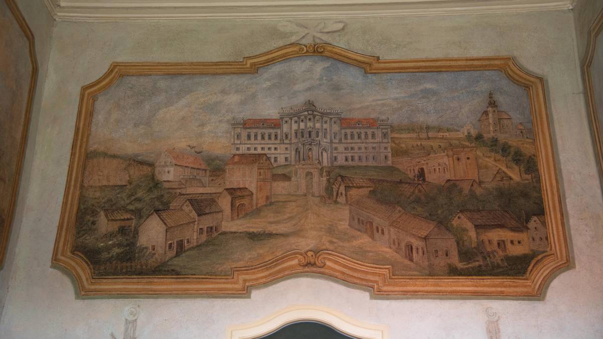 Nejmenší místnost, nebo spíše předpokoj, skrývá obrazy, kde by měly být znázorněny kolowratské statky, které měly financovat chod zámku. Fresky se zachovaly díky tomu, že je někdo během pobytu československé armády zakryl tapetou.