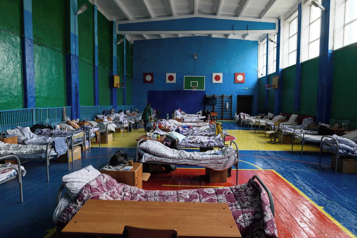 Nouzová ubytovna pro evakuované v severním Kazachstánu, 14. dubna.