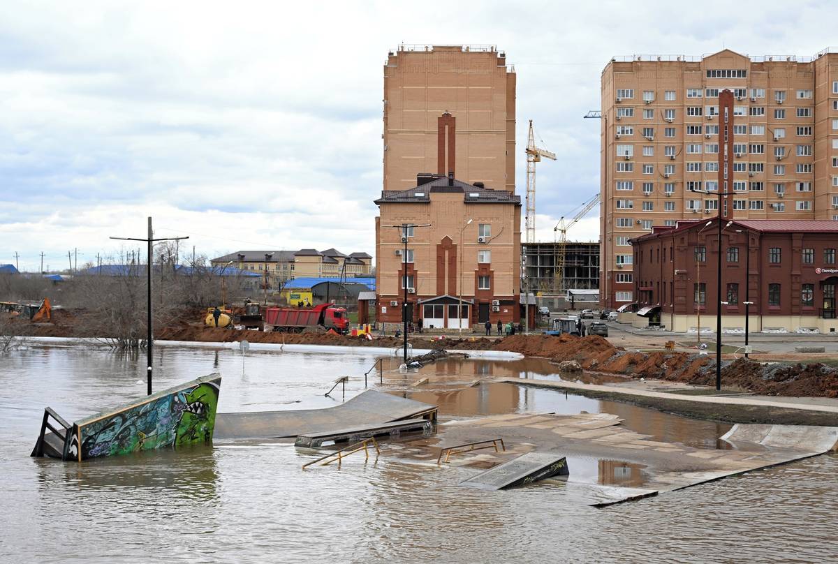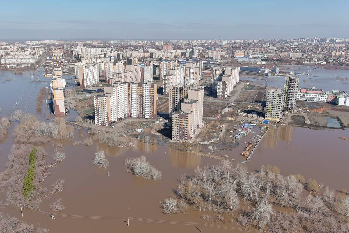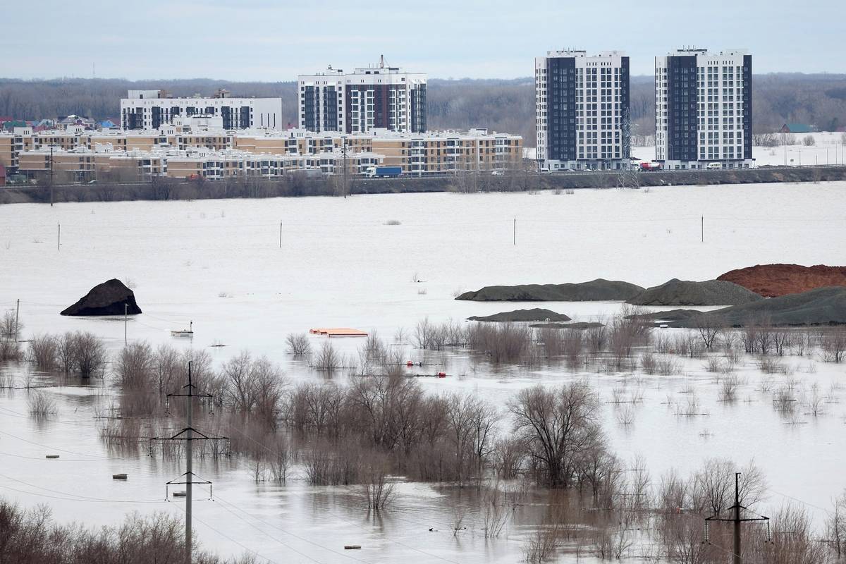 Pod vodou zůstává téměř 13 500 objektů, včetně 137 bytových domů. (Snímek z Orenburgu, 14. dubna.)