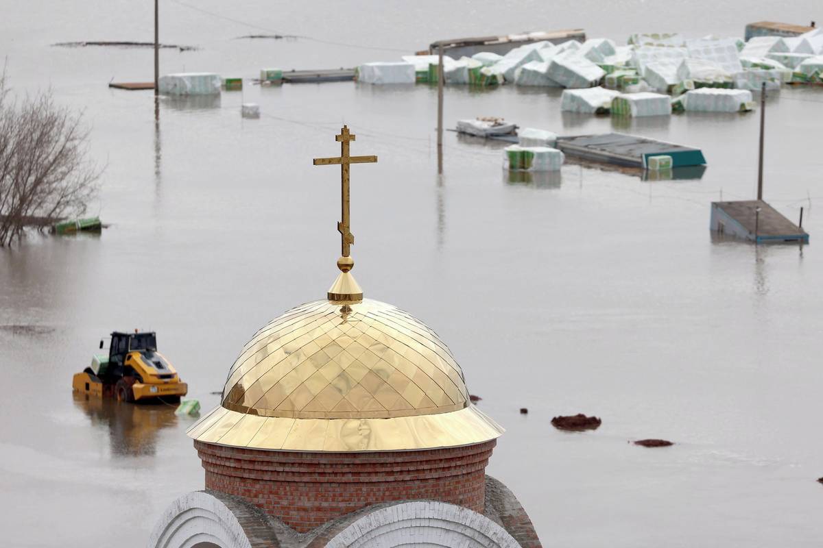 Ve výšce 11,87 metru hladina řeky Ural o 257 centimetrů převyšovala takzvanou nebezpečnou linii. Na této maximální úrovni se hladina držela deset hodin. (Kostel Panny Marie, Orenburg, 14. dubna.)
