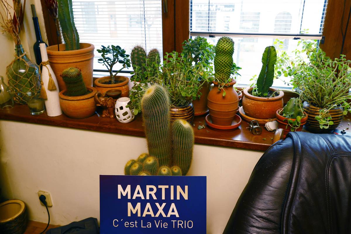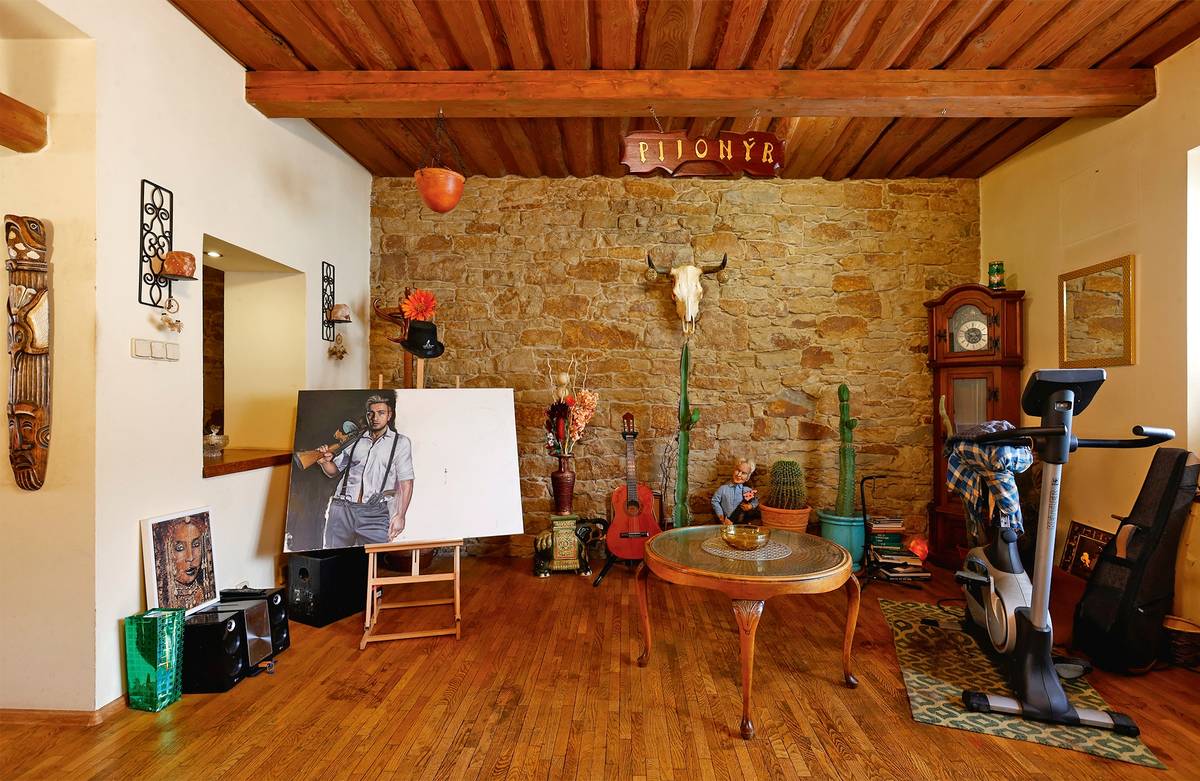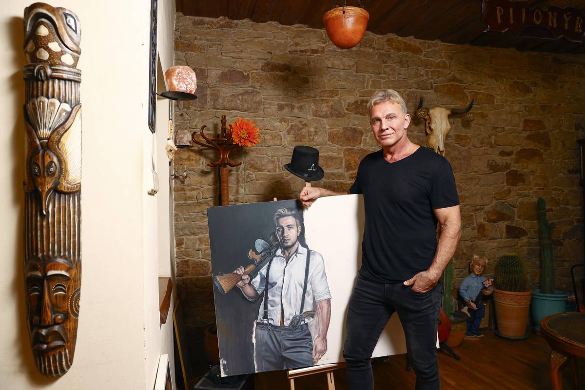 Ateliér je v sousední místnosti, ale rozmalovaný obraz pětadvacetiletého syna je na očích