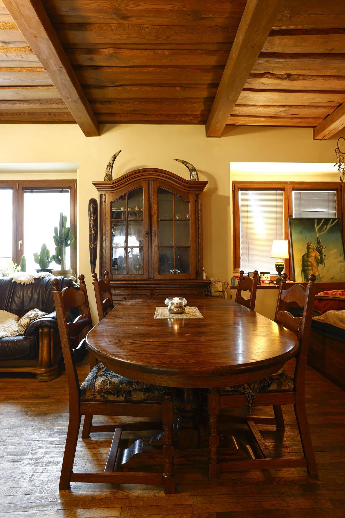 Historizující atmosféru umocňuje nově položený strop ze starých trámů i prken