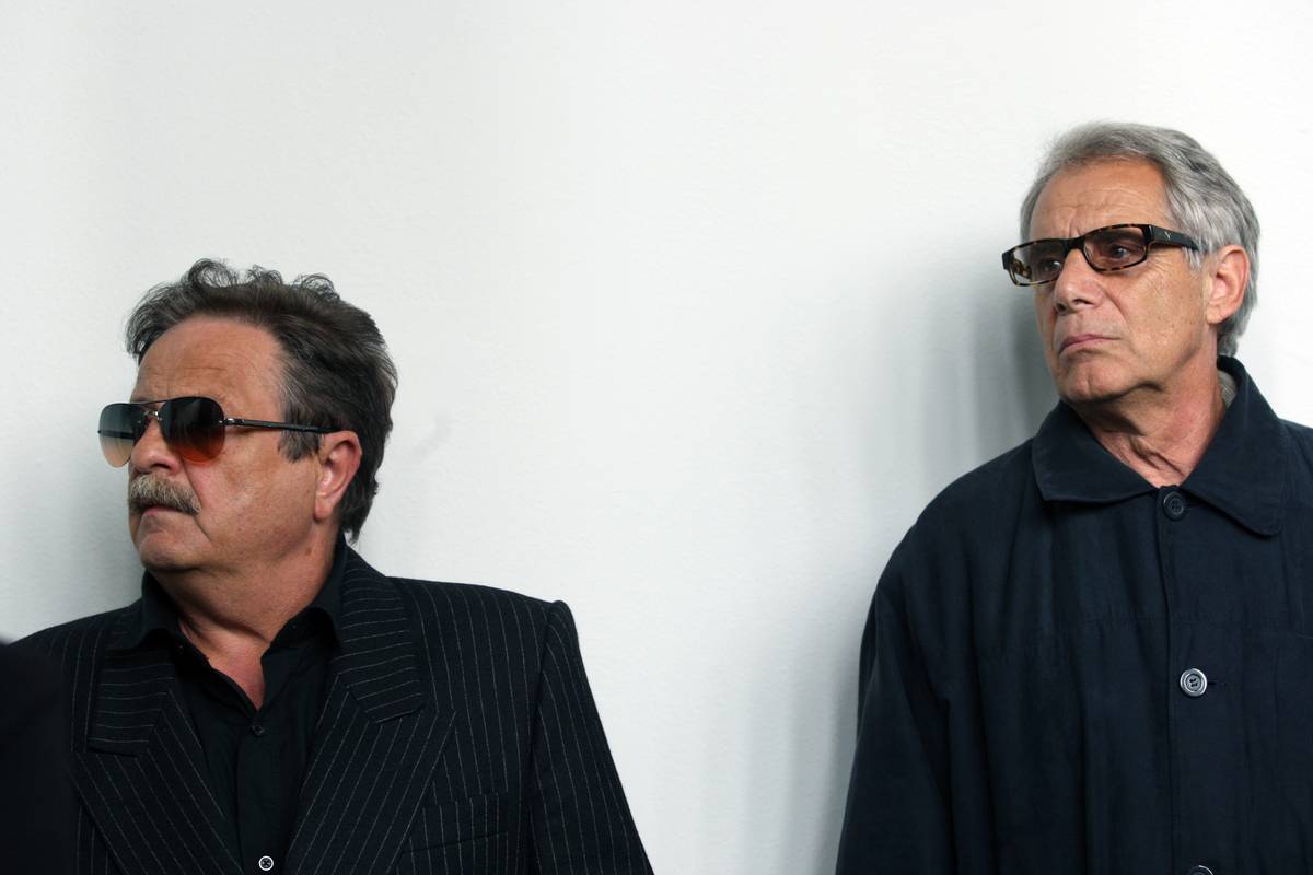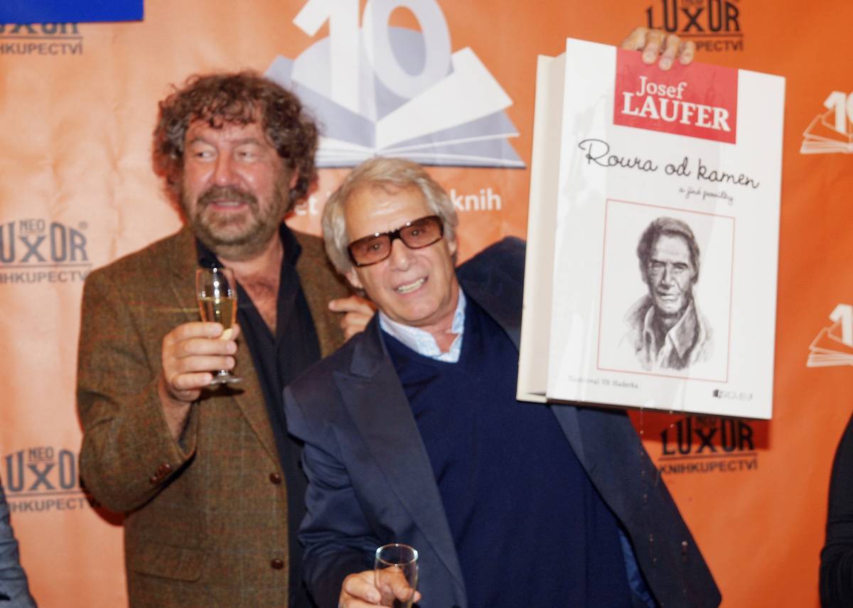 Zdeněk Troška a Josef Laufer na křtu nové knihy povídek Josefa Laufera Roura od kamen v pražském Luxoru - 2012