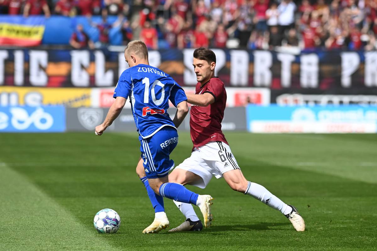 Kaan Karininen ze Sparty dotírá na Filipa Zorvana ze Sigmy Olomouc