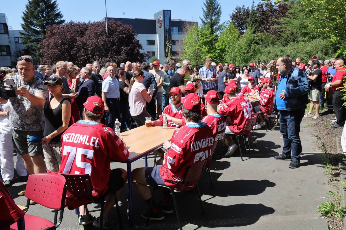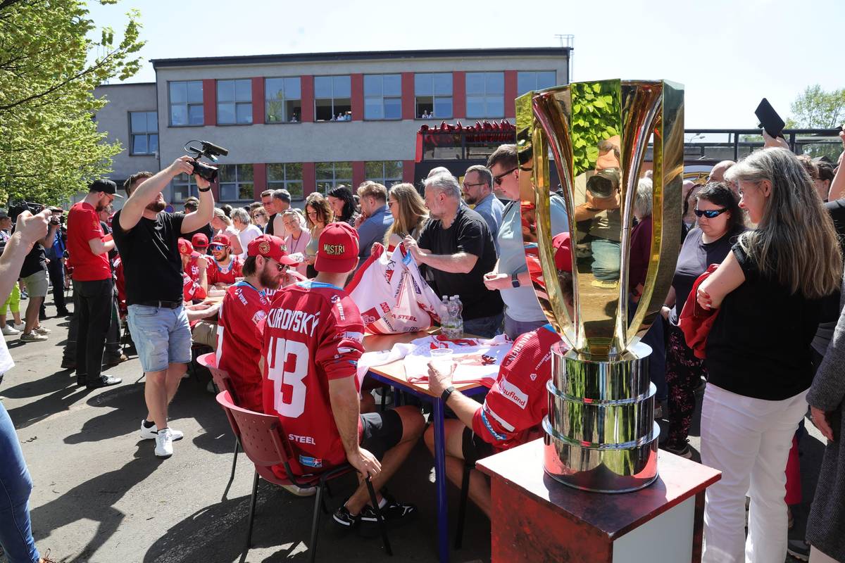Speciální mistrovský spoj opět vyjel. Třinec slavil v otevřeném autobuse