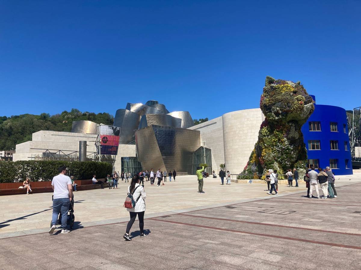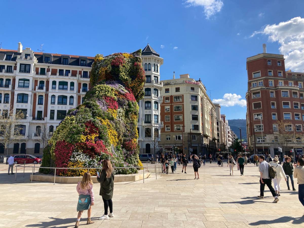 Puppy od umělce Jeffa Koonse. Zlí jazykové tvrdí, že muzeum za ním je jen drahou boudičkou.