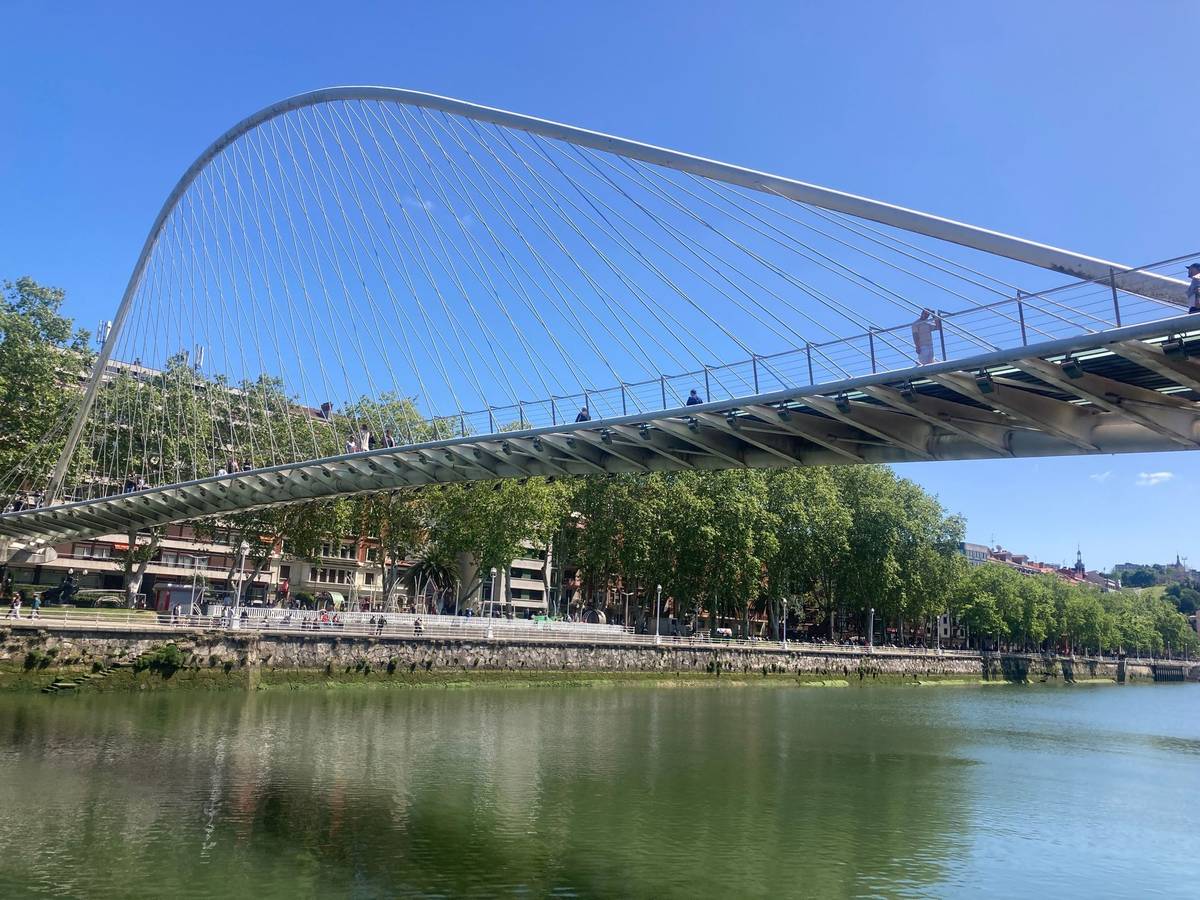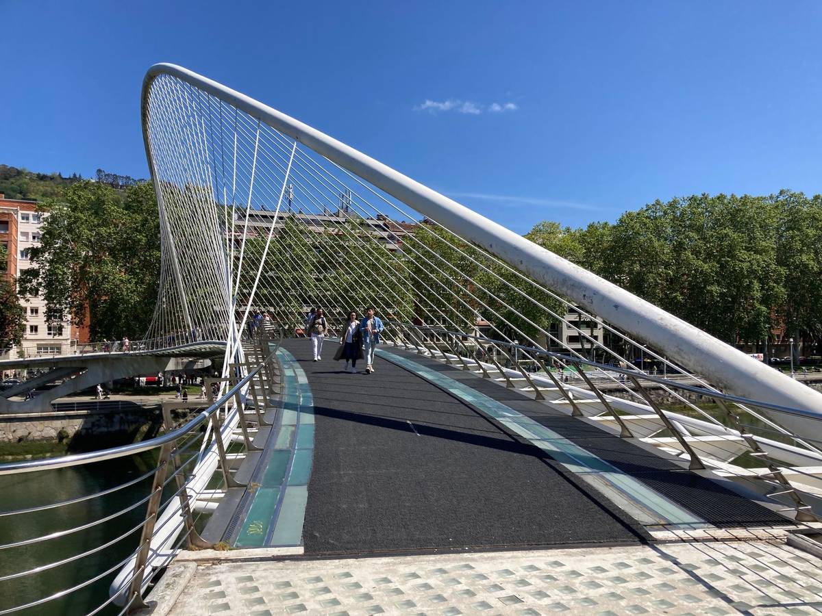 "Několik lidí si tu na mostě, který má skleněnou podlahu, zlomilo nohu. Město žádalo architekta, ať s tím něco udělá, ale on se od toho distancoval. Vyřešilo se to tak, že se na zem daly gumové koberce. Později, když se na most napojil ještě kus jiného, aby se propojily dvě části, Calatrava se s městem soudil, že poškodilo jeho dílo. Nemáme ho tu moc rádi," říká průvodkyně Miriam, která bydlí na okraji Bilbaa.