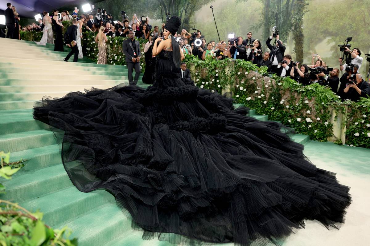 Cardi B. Zpěvačka dostála své pověsti a na Met Gala si opět oblékla haute couture šaty s tou nejdelší vlečkou. Jsou od značky Windowsen