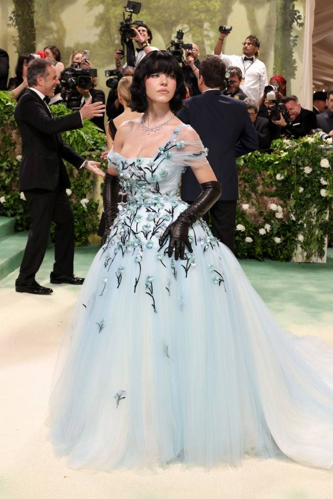 Lana Del Rey. Zpěvačka zariskovala a oblékla se jako stvoření z lesa (viděli jste seriál Yellowjackets?). Šaty jsou od značky Alexander McQueen a rozhodně na ně jen tak nezapomeneme